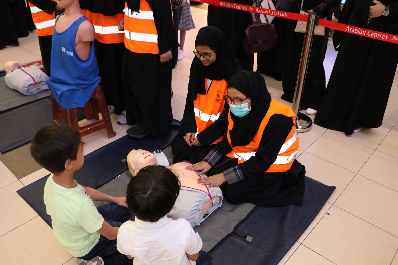 وتمكن المتسوقون من التدرب على كيفية إنعاش القلب وتقديم الإسعافات الأولية للمصابين، وطرق إنقاذهم.