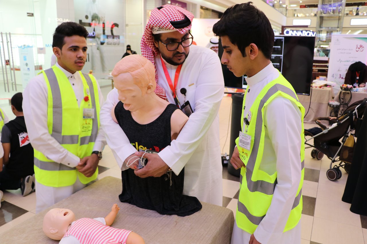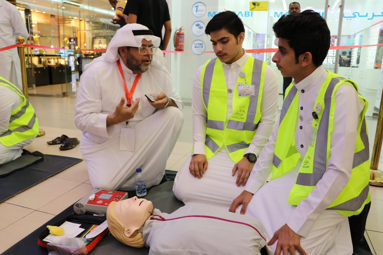 وأبان الأحمدي أنه تم تعريف المتسوقين والزوار بكيفية عمل الضغطات الصدرية والتنفس الصناعي كذلك تدريبهم على كيفية مساعدة مصاب بالغصة ( انسداد المجرى الهوائي) وكيفية استخدام جهاز الصدمات الكهربائية للقلب ومعرفة العلامات الحيوية لجسم الانسان.