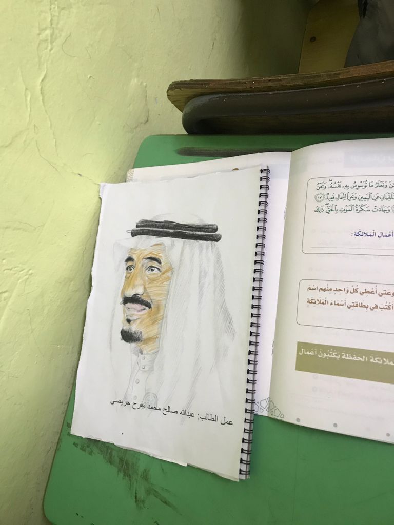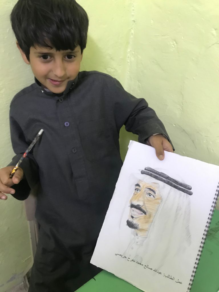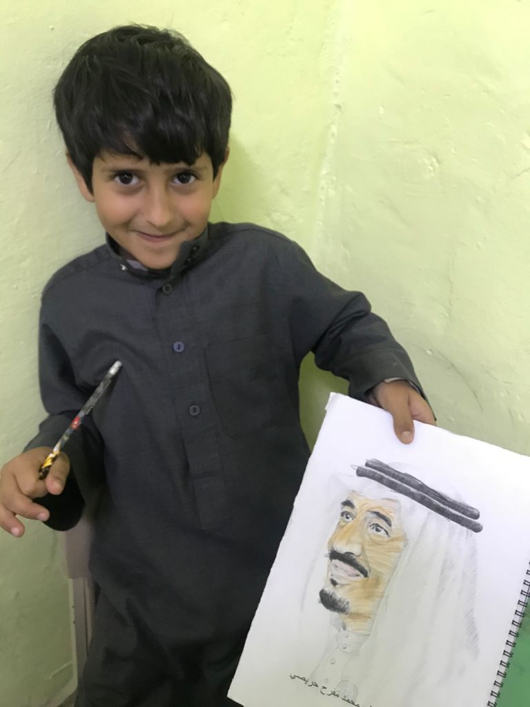 فيما كنت أتابع الطلاب خلال الحصص الدراسية وفي حجرة الصف وأثناء تصحيح الكراسات، توقفت برغم ظروف الحياة واختلاف مشاربها أمام تلميذ صغير بين يديه رسمة تحمل معالم خادم الحرمين الشريفين الملك سلمان بن عبدالعزيز آل سعود- يحفظه الله – يطوف بها منتشيا فاستوقفني المشهد وقلت له: