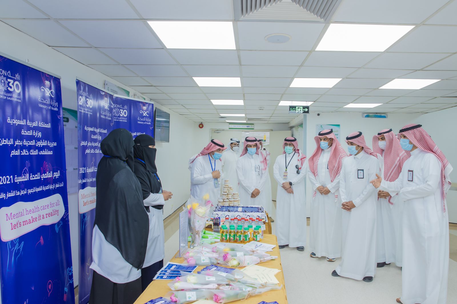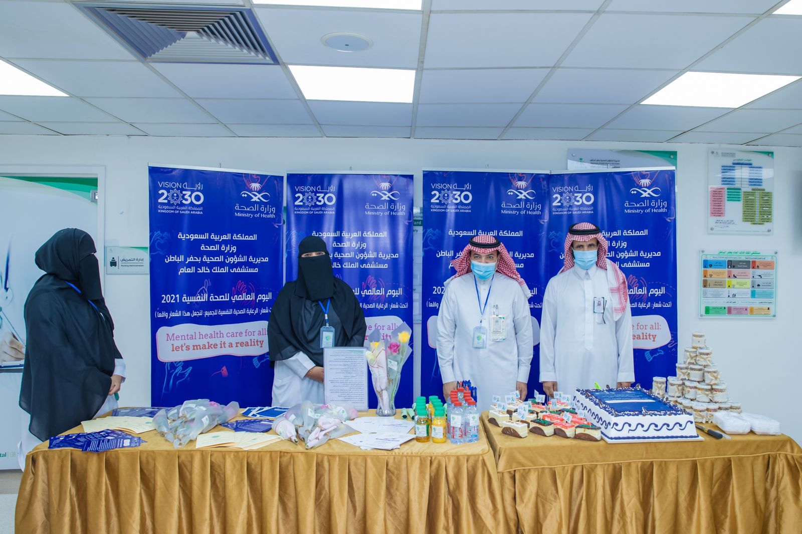 كما فعل قسم الخدمة الاجتماعية والنفسية بمستشفى الملك خالد اليوم العالمي للصحة النفسية وشارك مدير الشؤون الصحية ناصر الصافي الطاقم حيث شملت الفعالية على ركن توعوي للتركيز على دور الخدمة الاجتماعية والصحة النفسية والذي تأكد دورها بعد جائحه كورونا في دعم العاملين داخل المستشفى وخارجها والتواصل مع المرضى وذويهم في تقديم الدعم المعنوي والنفسي.