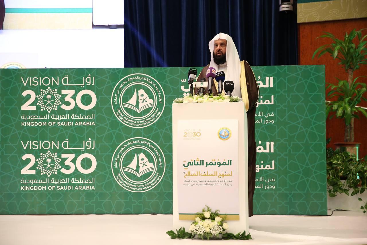 وأكد معاليه أن المؤتمر يبين منهج السلف الصالح ودور المملكة في تعزيزه، موضحاً أن شعيرة الأمر بالمعروف والنهي عن المنكر قد ضلت فيه جماعات كالخوارج والمعتزلة فأعملوا السيف في الأمة بدعوة الأمر بالمعروف والنهي عن المنكر.