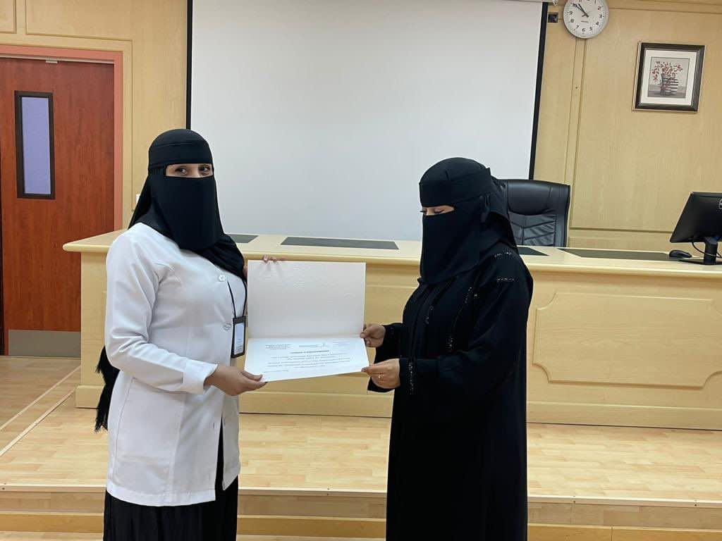 وفي الختام قامت عميد كلية التمريض بتكريم المشاركين بدروع تذكارية وشهادات شكر وتقدير على رأسهم الدكتور بدر طاهر والاستاذ ماهر عزيز العنزي مشرف التدريب بمستشفى النساء والولادة الذي قام بدور مهم وفعال في تهيئة المكان والمشاركة الفعالة والشكر موصول لجميع المشاركين في ورشة العمل