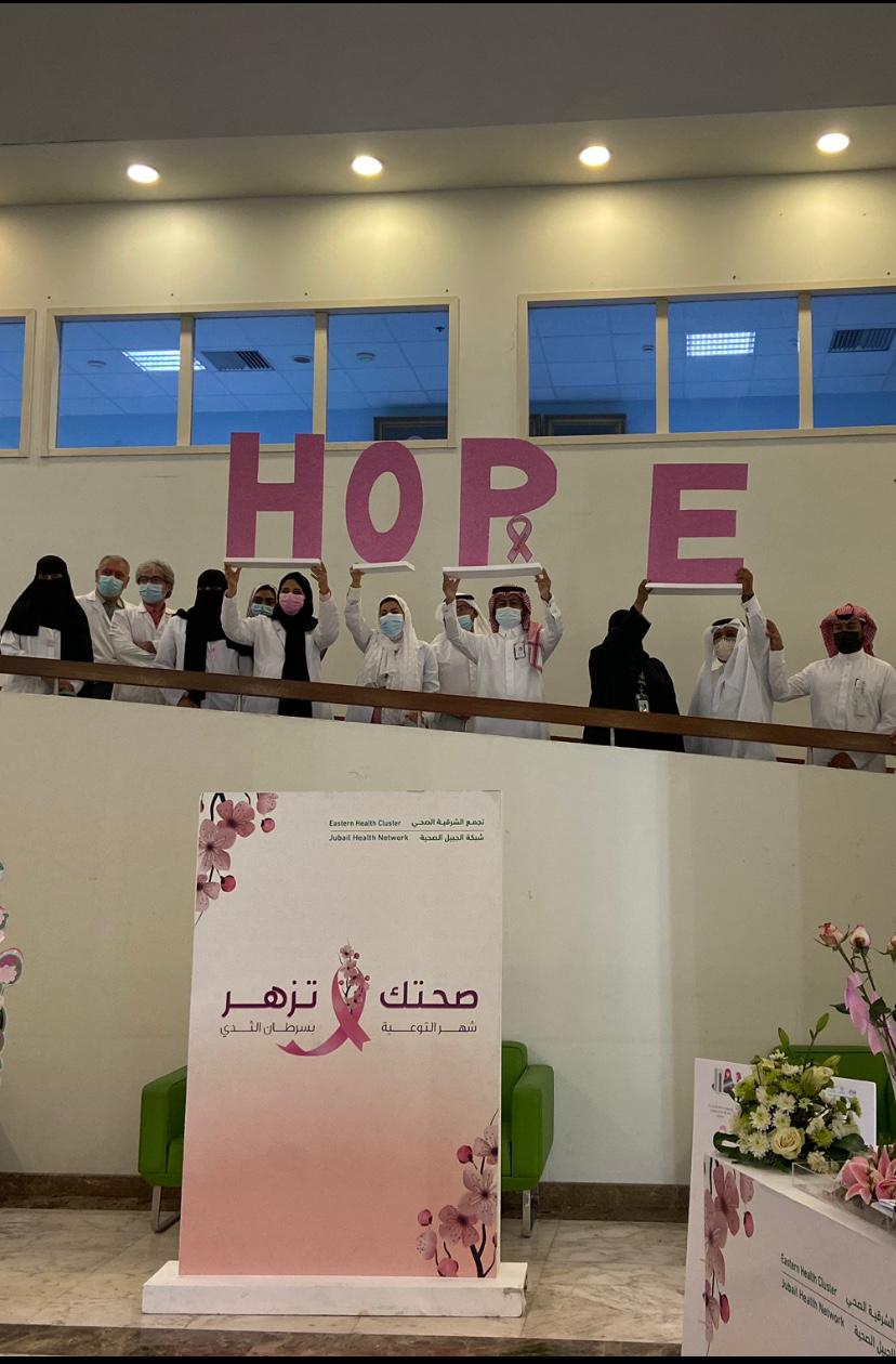 من جانبها قالت الدكتورة عهود الغامدي ، بأن الرعاية الصحية تركز على الوقاية من الأمراض قبل حدوثها ، بتمكين الأفراد على البقاء بصحة جيدة ، لافته بأن شبكة الجبيل الصحية ارتأت اطلاق هذه الحملة ، لتشجيع السيدات بتبني نمط حياة صحية يقيها من الإصابة بسرطان الثدي ، بالإضافة لزيادة الوعي بأهمية الوقاية وذلك عن طريق الفحص المبكر ، وتسهيل وصول سيدات المجتمع والموظفات ، ضمن الفئة المستهدفة ، لفحص الماموغرام في قسم الأشعة بمستشفى الجبيل العام وذلك أما عن طريق استقبال السيدة مباشرة ، أو تحويلها من طبيب العائلة بالمراكز الصحية التابعة للشبكة في أي وقت على مدار السنة.