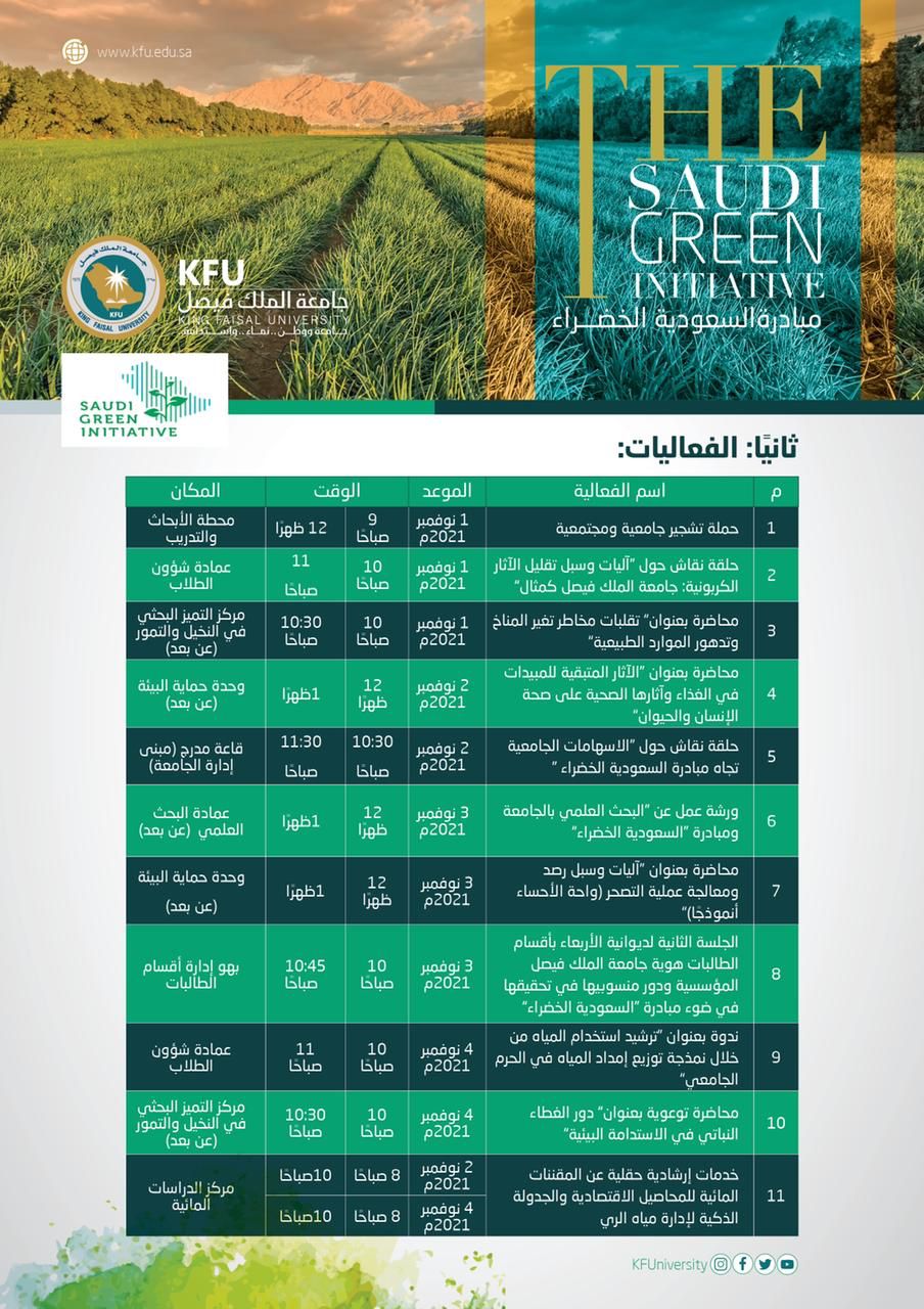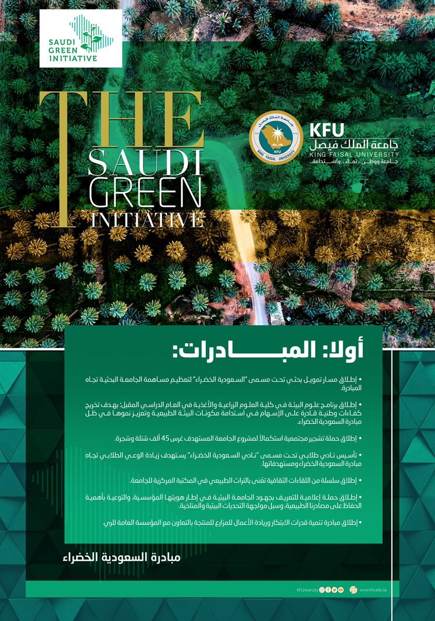 جامعة الملك فيصل تعلن تنفيذ حزمة مبادرات وفعاليات (السعودية الخضراء)