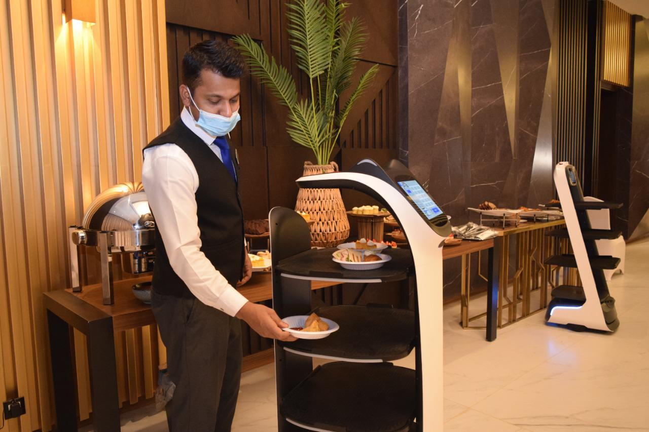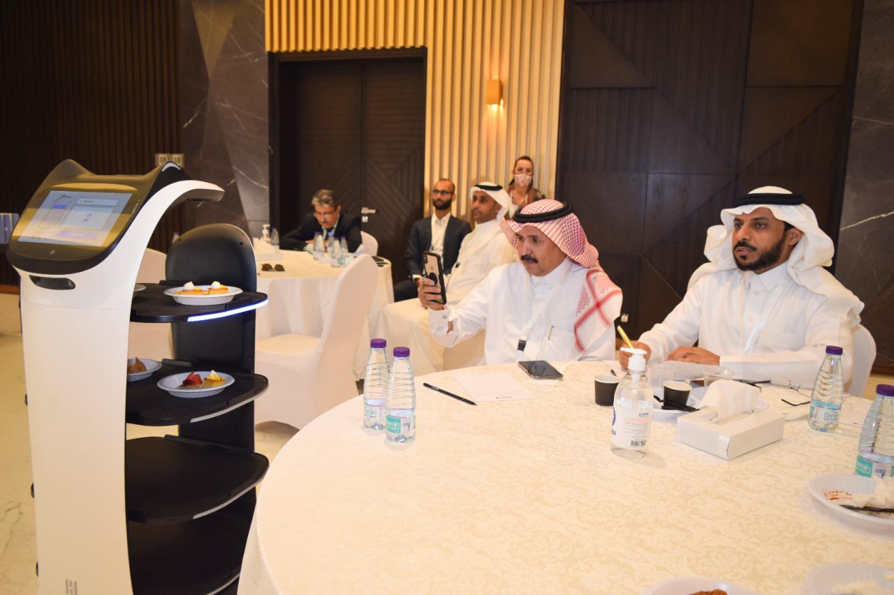 وقد استمتع الحضور بالتجربة الحية حيث تحركت الروبوتات داخل القاعة لتقديم الضيافة للمدعوين وهم على طاولاتهم من خلال حساسات الاستشعار المثبتة في الروبوتات والتي تمنع الاصطدام وتجعل الروبوت يتعرف على المكان بسرعة وبالتعلم الذاتي.