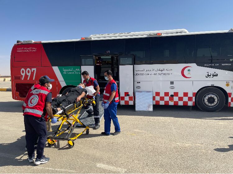 الجدير بالذكر أن هذه الفرضية شارك بها حافلة الإصابات المتعددة ( طويق ) القادرة على استيعاب عشرة مصابين، وسبعة سيارات اسعاف واربعون مسعف ومتطوع وثلاثة سيارات إسعاف من الشؤون الصحية وسيارتين من النقل الغير إسعافي بالإضافة لآليات الدفاع المدني وبتنسيق ميداني من الدوريات الأمنية والمرور.