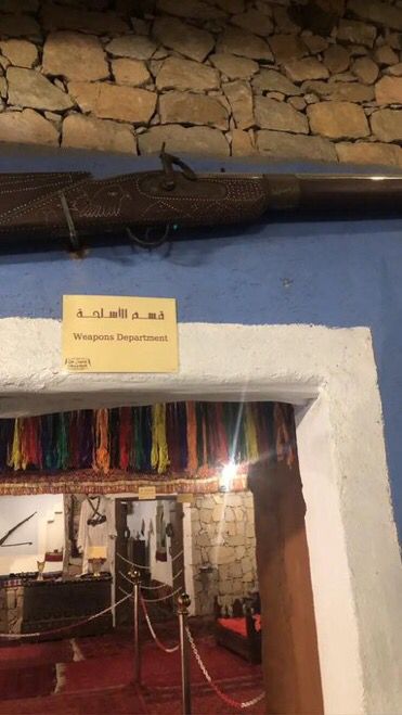 وقد رتبت أقسام ال ُمتحف على مجموعات، منھا قسم للأسلحة ویُعرض فیھا السیوف والبنادق والخناجر، ومنھا أیضاً قسم لمجالس الرجال والنساء، ویعرض فیھا الاثاث القدیم ذو البساطة، والذي یتمیز كل مجلس بطابعھ الخاص.