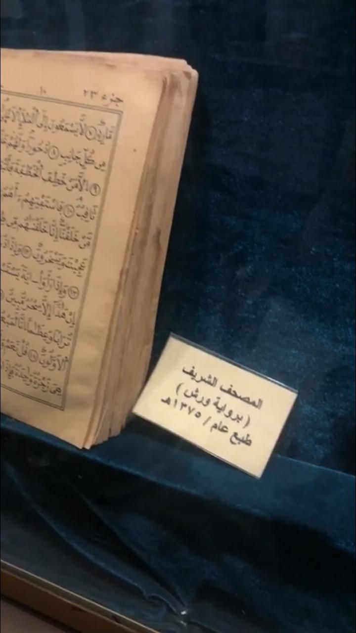 وكذلك یوجد في المتحف قسم خاص بالمخطوطات القدیمة، یعرض فیھا مصاحف بعدة روایات قدیمة، ونقوش حجریة، وكتب یرجع تاریخھا لأكثر من مائة عام.