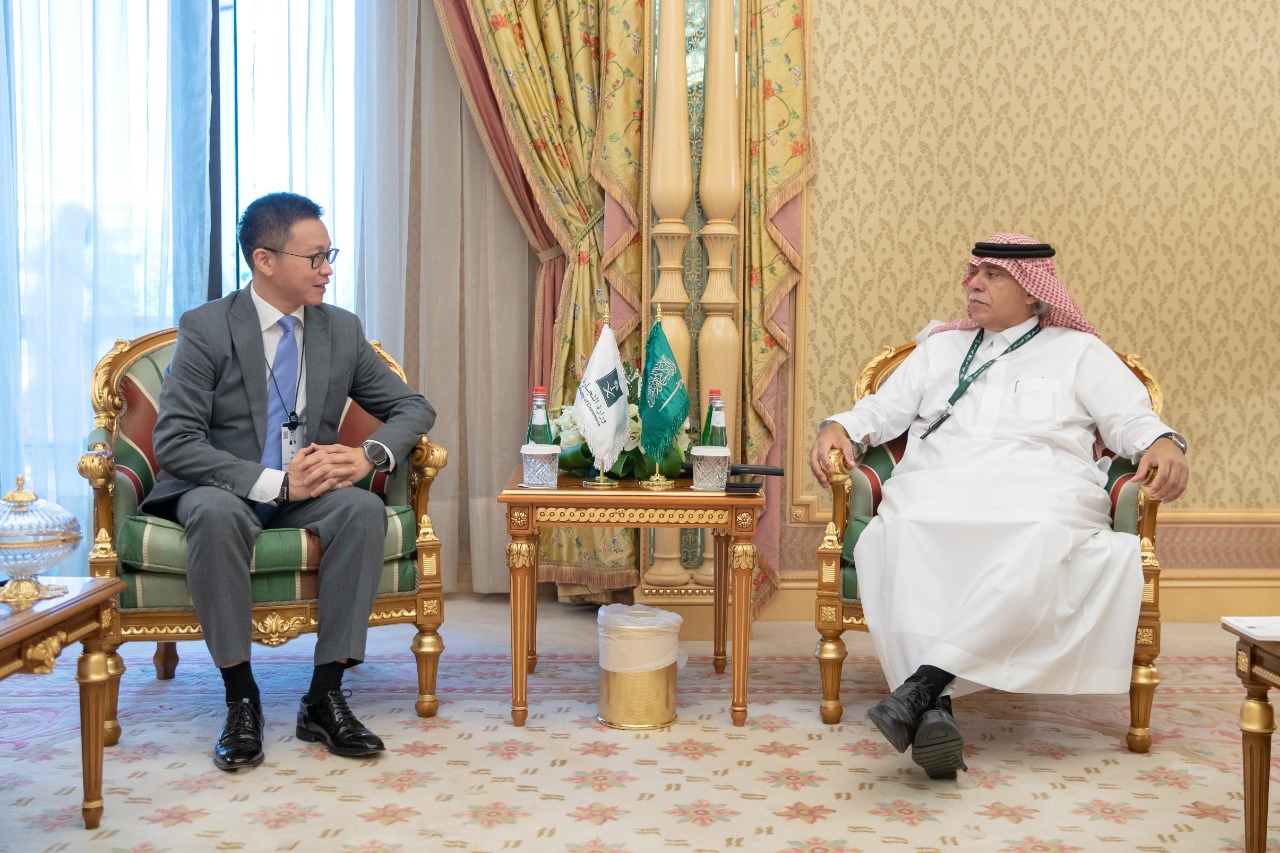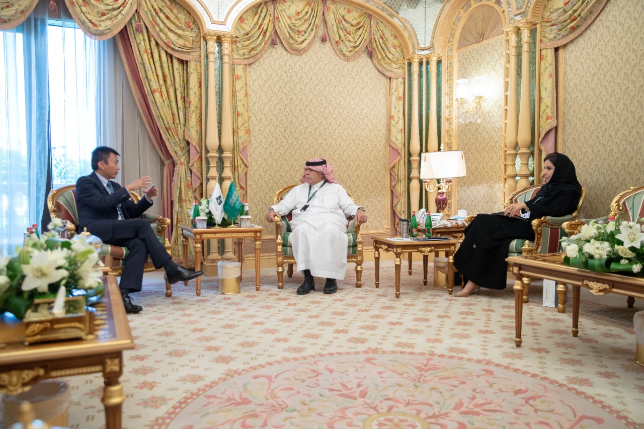 كما التقى القصبي بعدد من مسؤولي الشركات العالمية المتخصصة في مجالات الاتصالات وتقنية المعلومات، والذكاء الاصطناعي، والترفية، والاستثمار والتمويل، وهم: السيد هو تاو، نائب رئيس شركة هواوي العالمية بحضور إريك يانغ الرئيس التنفيذي لشركة “هواوي تك إنفستمنت العربية السعودية المحدودة”، والسيدة كورتني بويل رئيس قسم العمليات في فايف هندرد غلوبال الأمريكية، والسيدة مورغان لاي مؤسس وشريك عام بشركة Formulate Ventures الأمريكية، والسيد سانفورد كليمان منتج أفلام أمريكي، ومؤسس ورئيس Entertainment Media Ventures، والبروفيسور يي كوي رئيس معهد بريكروت للطاقة بجامعة ستانفورد الأمريكية، والدكتور نيل كويليام العضو المنتدب في شركة أزور استراتيجى البريطانية، والسيد جورج هوانغ نائب رئيس المجموعة ورئيس الأعمال الدولية في شركة Sense Time الصينية.