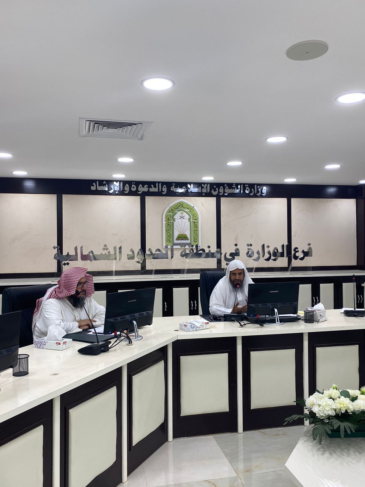 عقد فضيلة المدير العام لفرع وزارة الشؤون الاسلامية والدعوة والإرشاد في منطقة الحدود الشمالية، الشيخ مطارد بن دخيل العنزي، اليوم الإثنين الموافق1443/3/26 هـ ، اجتماعاً بمديري الادارات بالفرع ،وذلك بقاعة الاجتماعات بمقر الفرع.