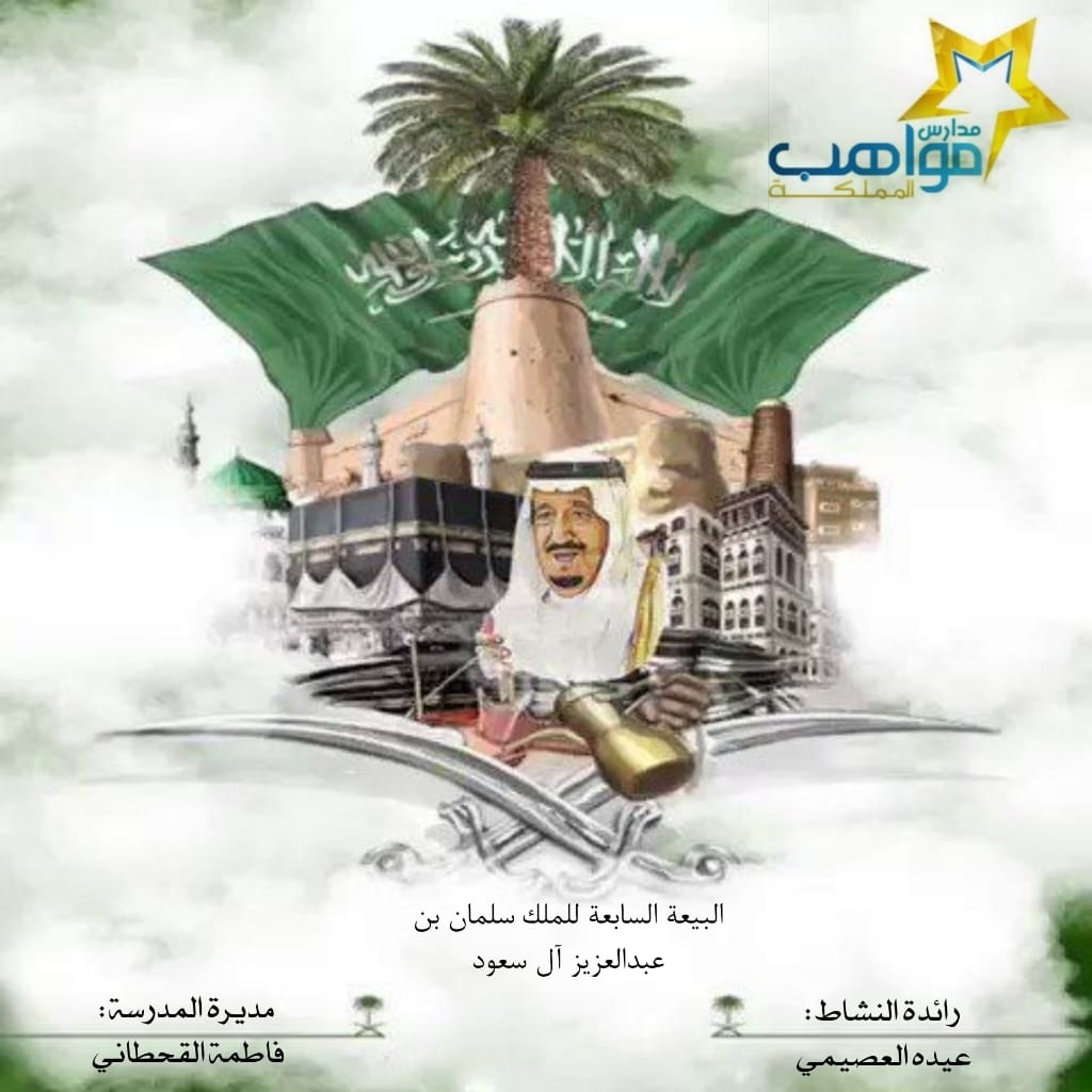 اختفت مدرسة مواهب المملكة الابتدائية اليوم الاثنين 1443/4/3 بالذكرى السابعة لبيعة خادم الحرمين الشرفين -حفظه الله- وذلك تحت اشراف مديرة المدرسة الأستاذة فاطمة القحطاني .