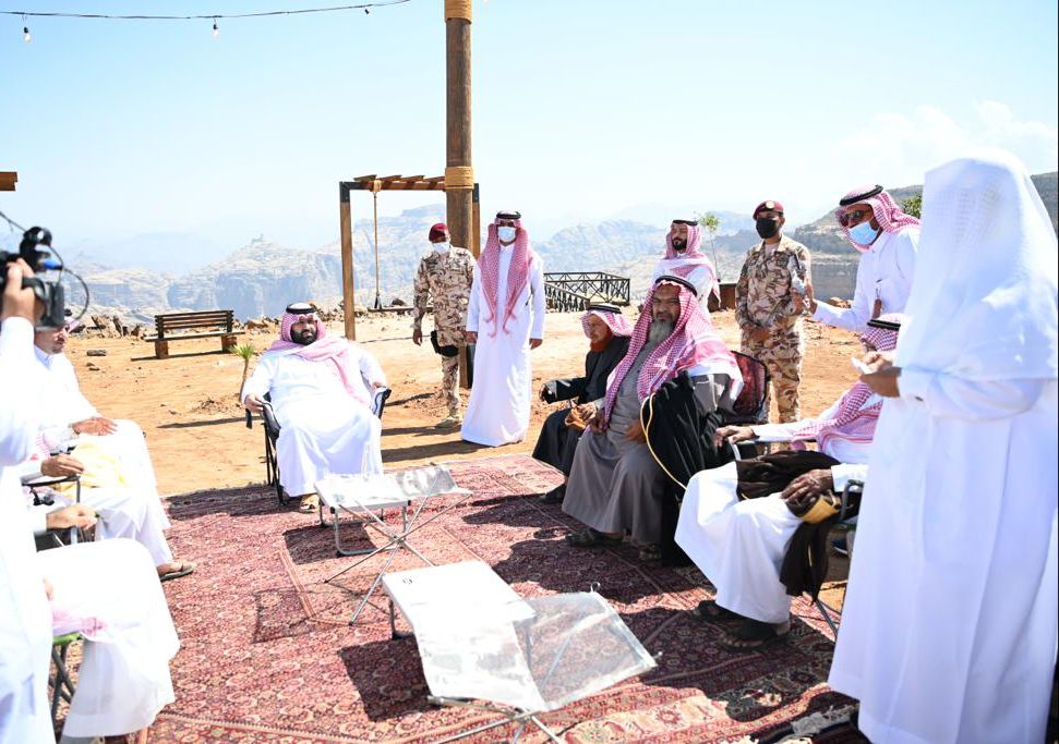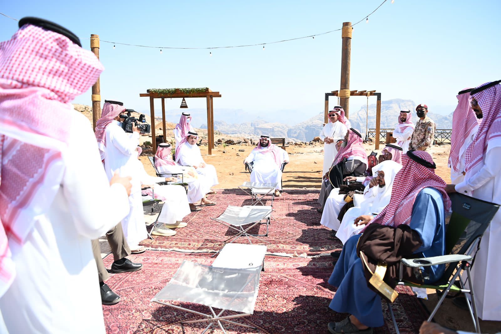 سمو أمير جازان بالنيابة يتفقد مطل القمة بجبل القهر ويلتقي مشايخ وأهالي محافظة الريث