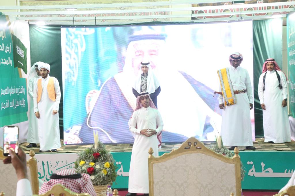 عقب ذلك قصيدة وطنية خصصت لهذه المناسبة، نالت استحسان الجميع، واختتمت الاحتفالية باوبريت “نبايعكم على السمع والطاعة” والذي قدمه عدد من طلاب متوسطة وثانوية مسلية.
