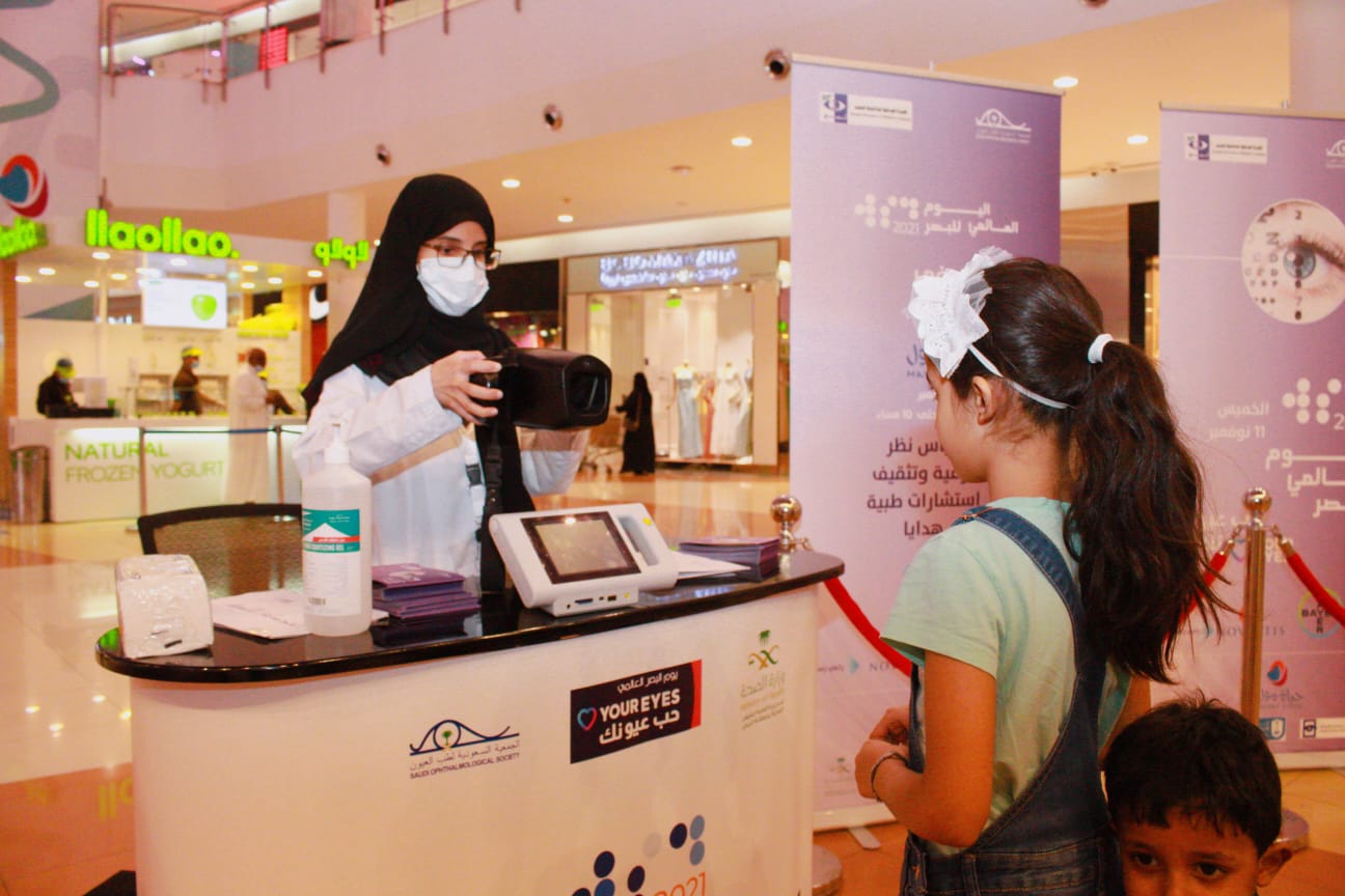 في حياة مول ، وتم خلالها إجراء فحص للعين وفحص ضغط العين للزوار وتقديم التوعية الصحية والتعريف بأهمية الحفاظ على نعمة البصر والحد من نسبة انتشار أمراض العيون المسببة للإعاقات البصرية .وطرق العلاج والوقاية منها.