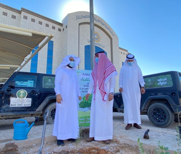 دشن فضيلة مدير عام فرع الرئاسة العامة لهيئة الأمر بالمعروف والنهي عن المنكر بمنطقة الحدود الشمالية الشيخ أحمد بن علي عبدلي حملة “لنجعلها خضراء” بمبنى الفرع بحضور سعادة مدير المركز الوطني لتنمية الغطاء النباتي ومكافحة التصحر بالمنطقة الأستاذ زياد الخمعلي، والمهندس أحمد البلوي حيث تم غرس الشتلات من أنواع عدة من الأشجار المحلية بساحة الفرع والأماكن المحيطة به ، كما وسيتم غرس أنواع مماثلة بمشيئة الله تعالى في بقية المراكز والهيئات في المحافظات التابعة للمنطقة .