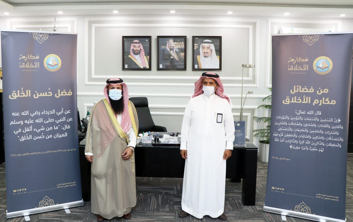 واستمع سعادته لشرح عن الحملة وأهدافها من فضيلة رئيس هيئة الأمر بالمعروف والنهي عن المنكر بمحافظة النعيرية الشيخ مبارك بن محمد القحطاني ، والتي تشتمل على العديد من البرامج التوعوية التي تُعنى بالتوعية بأهمية مكارم الأخلاق الحسنة ، والتحذير من الأخلاق السيئة .
