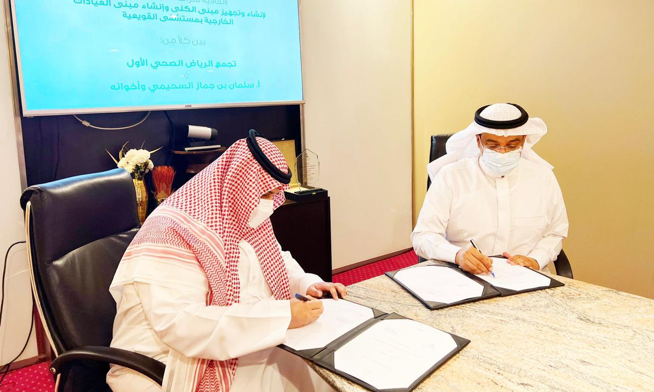 وقع الرئيس التنفيذي لتجمع الرياض الصحي الأول د. صالح بن عبدالله التميمي اتفاقية شراكة مجتمعية مع الأستاذ سلمان بن جماز السحيمي؛ لإنشاء وتجهيز مبنى الكلى ومبنى العيادات الخارجية بمستشفى القويعية العام، وذلك بحضور المدير التنفيذي لنطاق القويعية الصحي أ. عايض العصيمي والمشرف على المشروع د. عبدالرحمن الشقير.