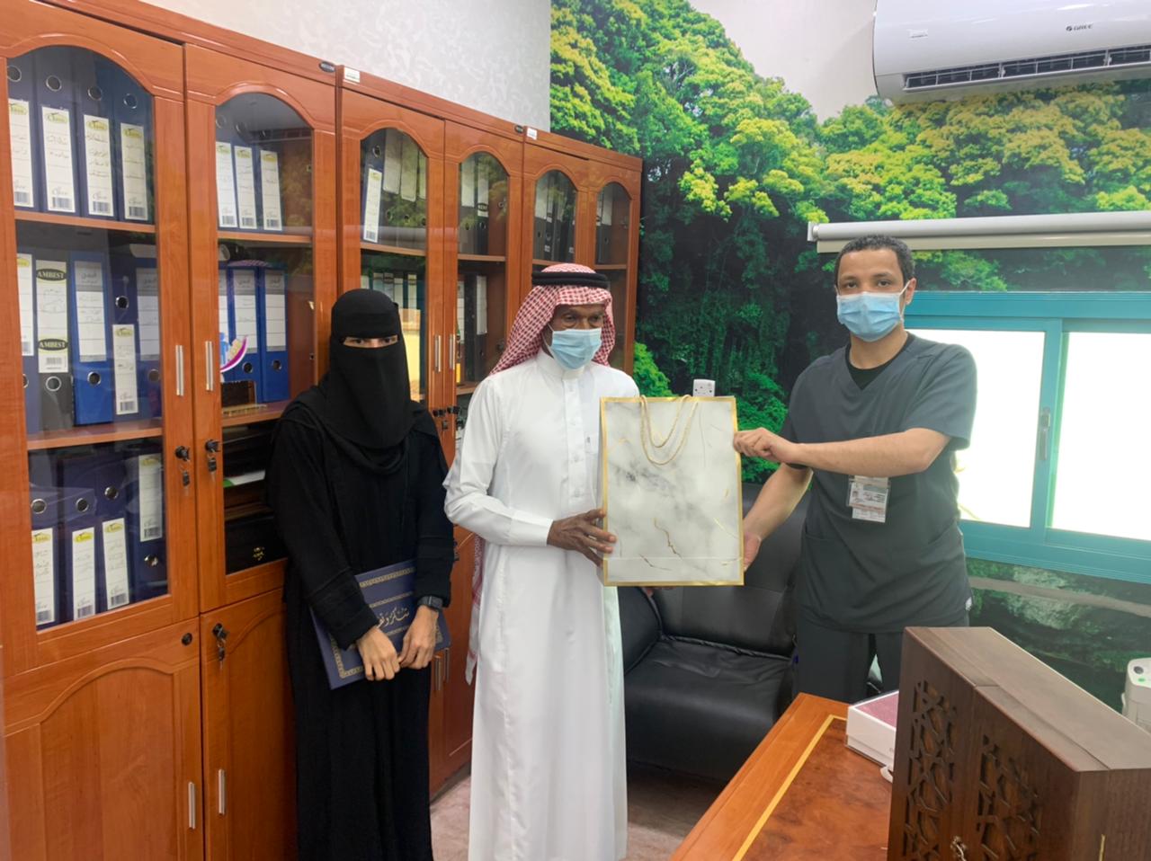 وقد قدم المستشفى شهادة شكر وتقدير للمحتفى بها نظيراً لجهودها المتميزة ابان ما كانت تشغل منصب رئيسة قسم التأهيل الطبي بالمستشفى ودرع تذكاري وهدايا من قسم التأهيل الطبي، وقد قدم نائب مدير ادارة التأهيل الطبي بصحة جازان درعاً تذكارياً تكريماً لها وذلك لتميزها في البرامج التى شاركت بها في ادارة التأهيل الطبي بصحة جازان وكذلك هدايا قدمت للمذكورة من طاقم التأهيل الطبي بالمستشفى..