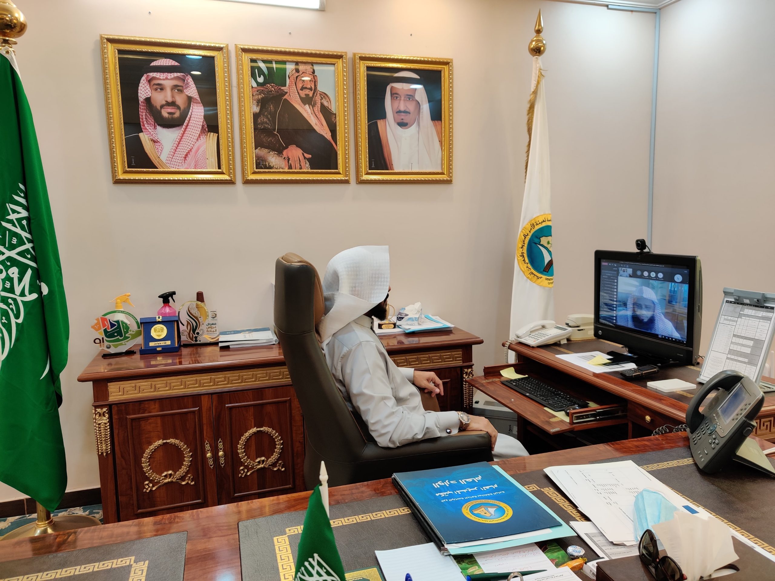 عقد فضيلة مدير إدارة التوعية والتوجيه بالرئاسة العامة لهيئة الامر بالمعروف والنهي عن المنكر في فرع منطقة الباحة الشيخ/ محمد بن عبدالله بن دباج لقاءً لتعزيز الأمن الفكري (عن بعد ) يستهدف منسوبي فرع الرئاسة العامة بمنطقة الباحة من إداريين وميدانيين.