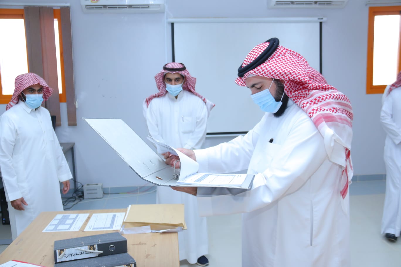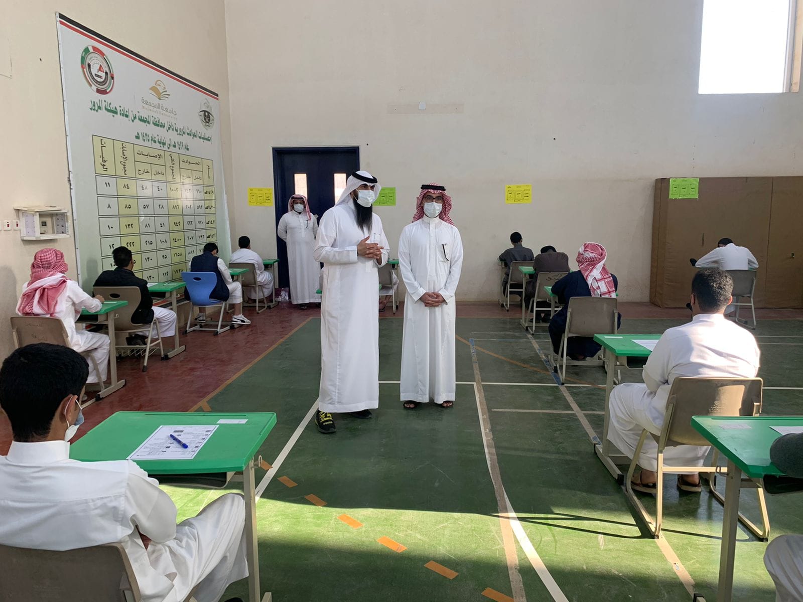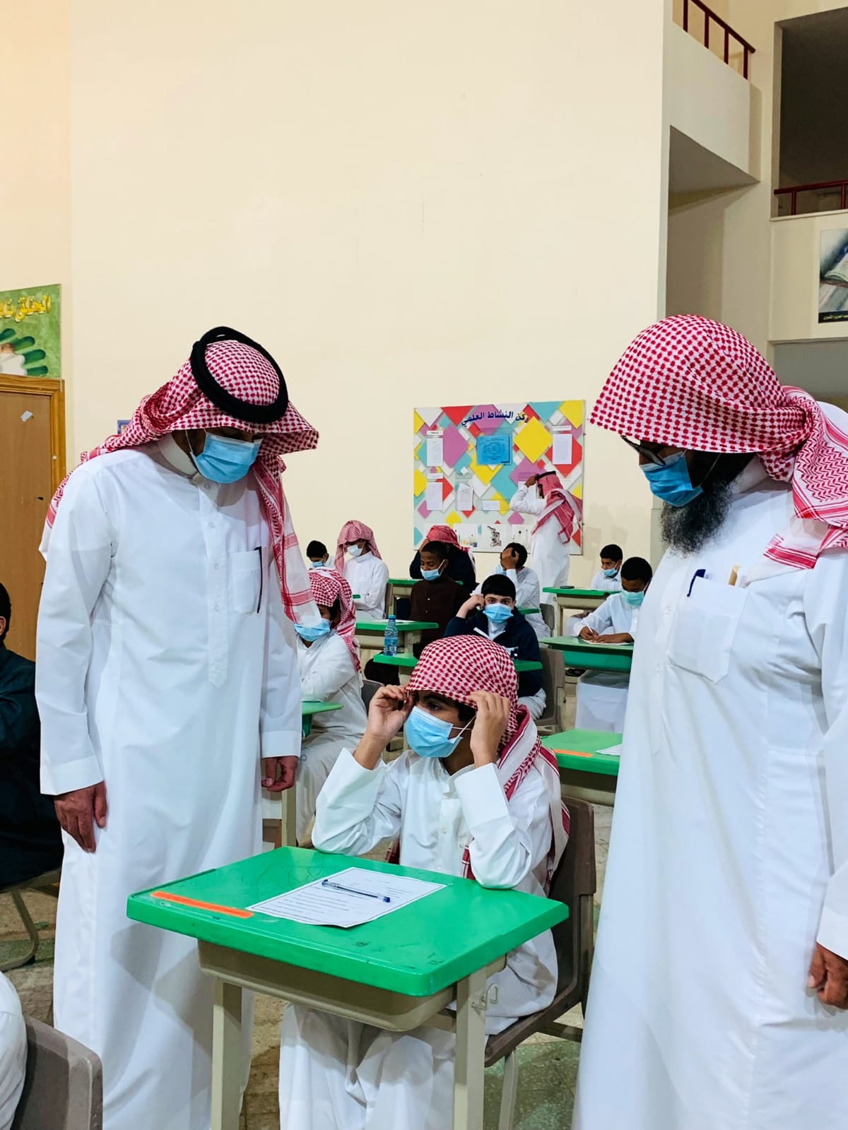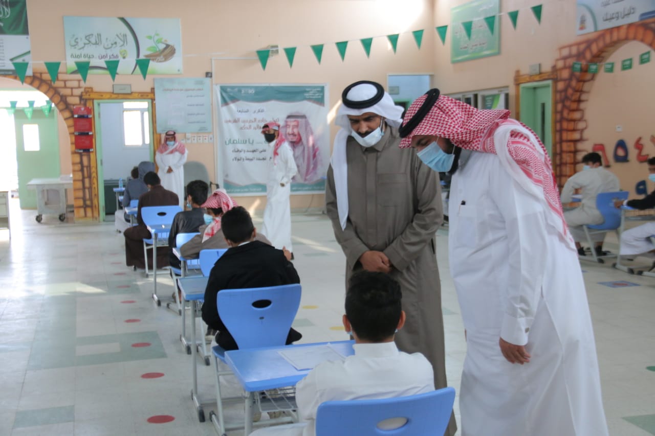 كما قام المساعد للشؤون المدرسية الأستاذ فهد بن حسن العولة بزيارة تفقدية اطمأن فيها على سير الاختبارات وتهيئة الأجواء المناسبة لإجراءها ، وملاحظة تناسب توزيع الطلاب على القاعات، وتوفر الإجراءات الوقائية.