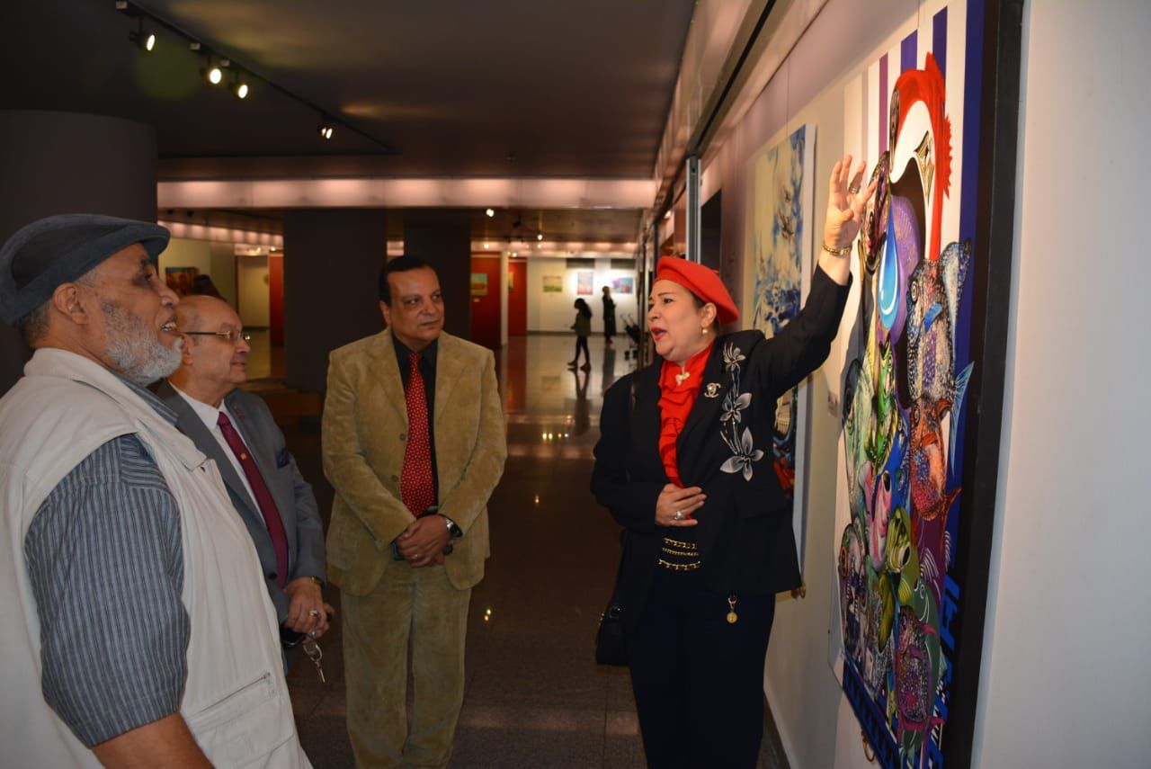 وأضافت الدكتورة علا يوسف ، بأن هذا المعرض إنجاز بكل المقاييس وهناك مجهود كبير جداً بذل من فريق العمل حتى يخرج بهذا الشكل الجديد والرائع ، فالمعرض يعكس قيمة ومكانة عظيمة على مستوى العالم بما لديهم من عمق حضارى ومكنون ثقافي وتراث عظيم للأجداد ، ليثبت للجميع أن الفن هو القوى الناعمة والذى يجذب الكل للإلتفاف والتعاون والتأزر والتكاتف مع الشعوب في كيان متكامل واحد تنصهر فيه الشعوب فى بوتقه واحدة و من جانب اخر اضاف الفنان سعيد العلاوي بأن الفنون البصرية تتخطى كل الحواجز والحدود لتصل لكل شرائح المجتمعات في سعي جاد من الفنان الحريص على أن تصل أعماله للآخرين.