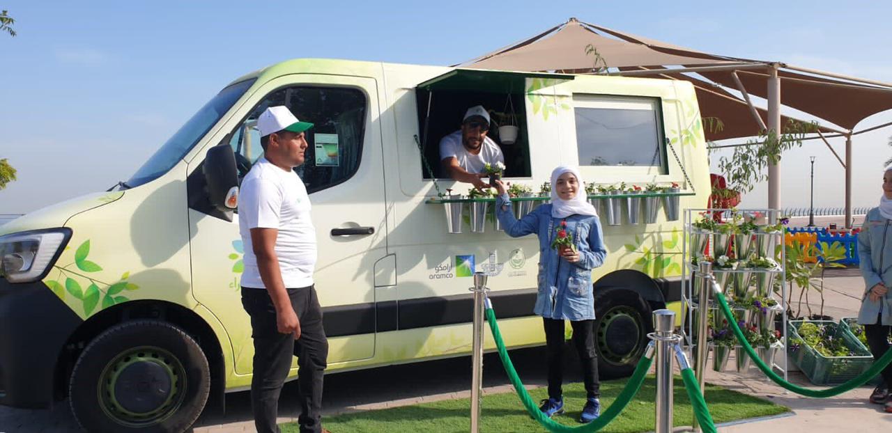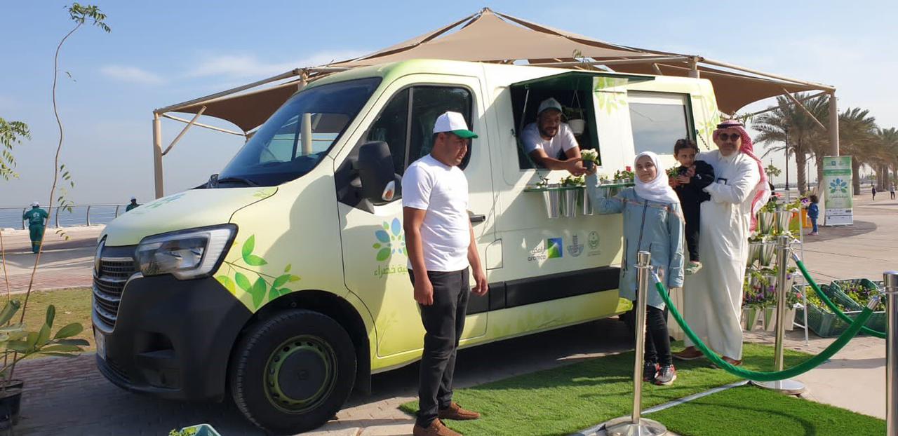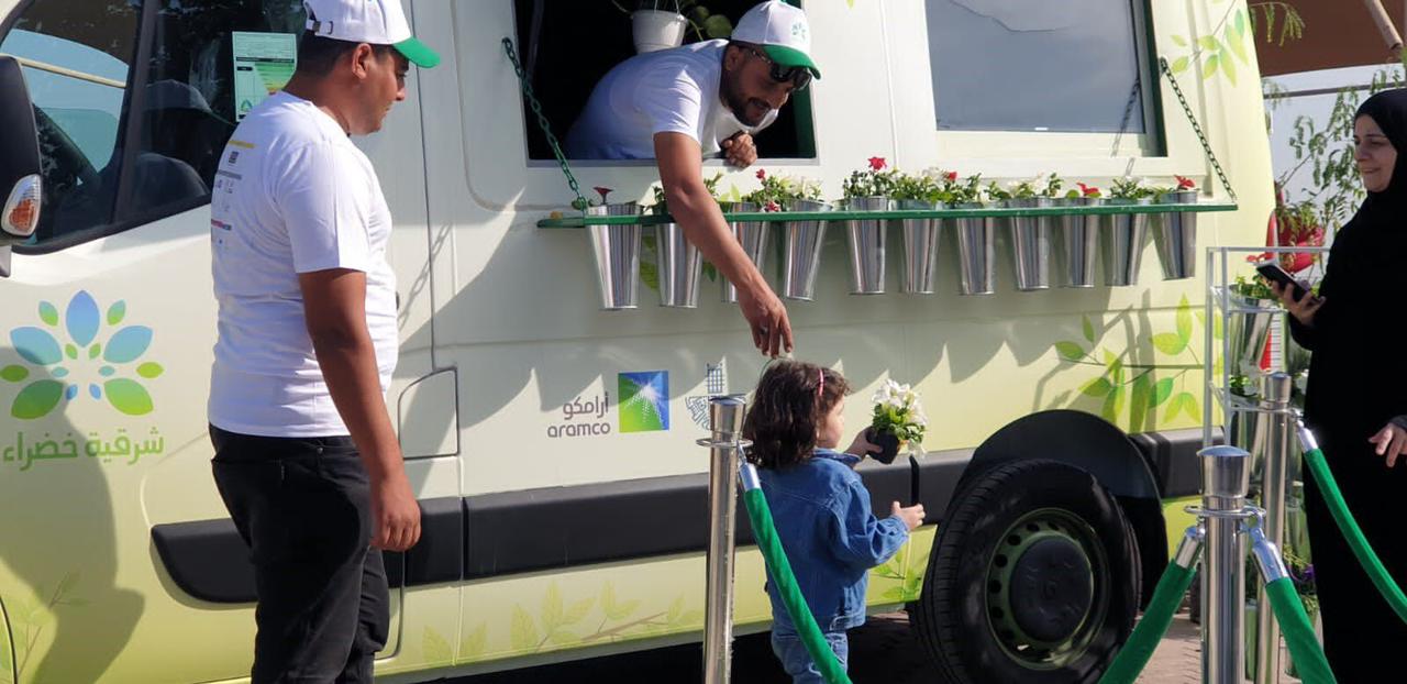 أمانة الشرقية توزع 1300 شجرة من خلال عربة شرقية خضراء في حاضرة الدمام