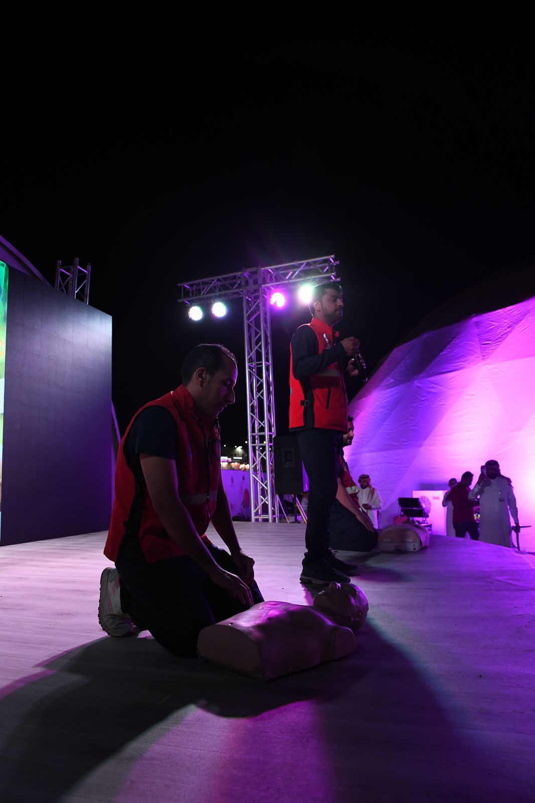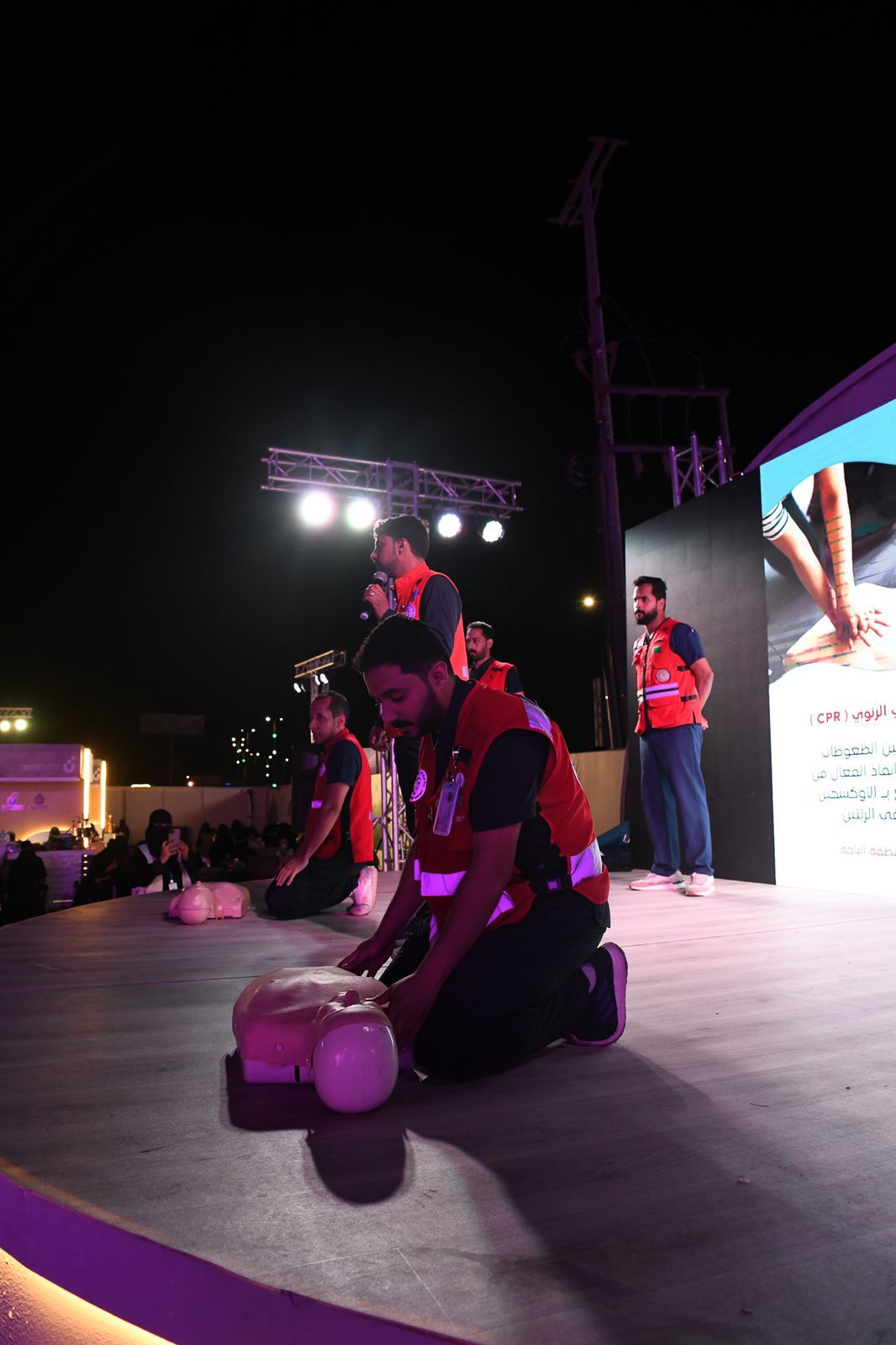 وتضمنت الفعاليات تقديم دورة تدريبية للتعريف بكيفية التعامل مع الحالات الإسعافية في مهرجان الرمان 11، وإقامة ركن تعريفي بالإسعافات الذي استمر فعالياته على مدى ثلاثة أيام, يشمل التعريف بكيفية التعامل مع الحالات الإسعافية، وتقديم معلومات ومهارات عن كيفية التعامل مع حالات توقف القلب والتنفس، وعمل الإنعاش القلبي الرئوي وإيقاف النزيف، والتعريف “بتطبيق أسعفني” وكيفية الالتحاق بالدورات التدريبية في الهيئة، وركن لقياس العلامات الحيوية وشرح لمحتويات الحقيبة الإسعافية.