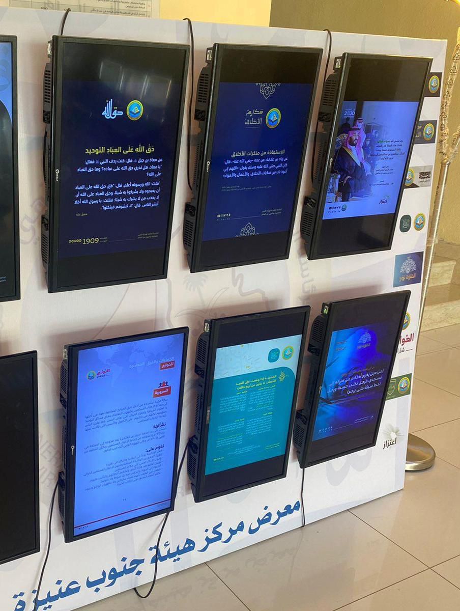 فعلت هيئة الأمر بالمعروف والنهي عن المنكر بمحافظة عنيزة ممثلة بمركز هيئة جنوب عنيزة حملات الرئاسة العامة التوعوية المعتمدة، داخل الصالة الرئيسة بمبنى شرطة محافظة عنيزة، وذلك عبر ٨ شاشات إلكترونية تعرض محتوى الحملات التوعوية ووضعت عبر إطار موضح شعار كل حملة .