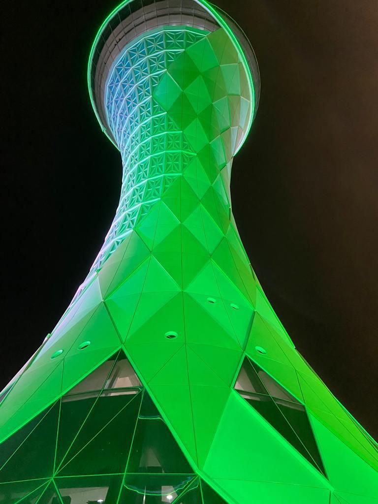 حيث زينت المباني التابعة للقطاعات الحكومية باللون الأخضر من خلال الاضاءة الليلة التي تظهر جمال المباني أثناء الليل وهي تكتسي باللون الأخضر في منظر بديع يبعث الشعور بالفرحة الكبيرة والاحتفاء بهذه المناسبة الغالية على قلوب الجميع