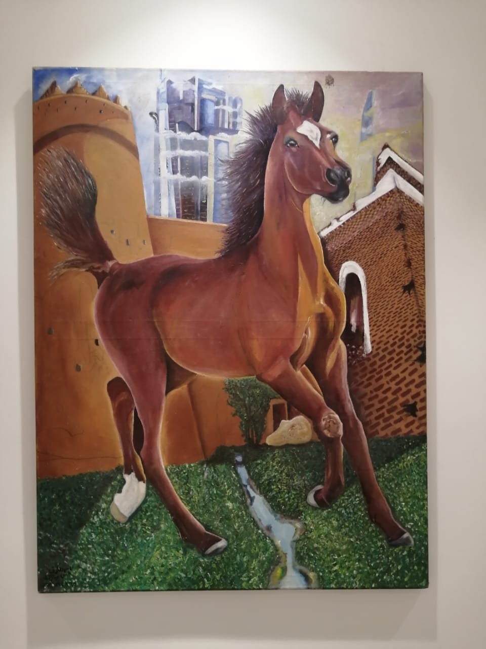 انتهى الفنان التشكيلي المبدع الاستاذ طارق حسن هندي مباركي من لوحته الفنية والتي تجمع بين الماضي والحاضر وهي لوحة وطنية وهي مزيج بين القديم والجديد والحداثة والتقليدي وقد استخدم فيها الألوان الزيتية ومقاس اللوحة متر ٪؜ ٧٠