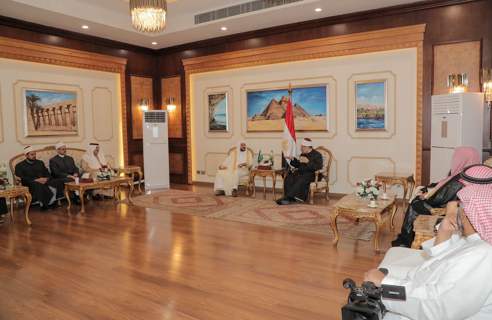 من جانبه، رحب وزير الأوقاف المصري الدكتور محمد مختار جمعة، بمعالي الشيخ الدكتور عبد اللطيف آل الشيخ في بلده الثاني مصر ، موجهًا التحية والتقدير للمملكة العربية السعودية وخادم الحرمين الشريفين وسمو ولي عهده الأمين – حفظهما الله- وإلى وزارة الشؤون الإسلامية والدعوة والإرشاد في المملكة العربية السعودية وعلى رأسها معالي الشيخ الدكتور عبد اللطيف آل الشيخ، مؤكدًا إعتزازه بالعلاقة الطيبة بين البلدين الشقيقين وتقديره لدور المملكة الريادي في خدمة الإسلام والمسلمين ورعاية شؤون الحرمين .