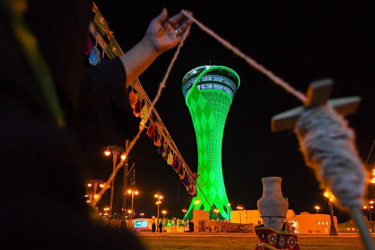 اكتسى برج مياة عرعر المعلم العمراني والحضاري الابرز بمنطقة الحدود الشمالية باللون الاخضر احتفالاً باليوم الوطني 92 للمملكة والذي يتميز