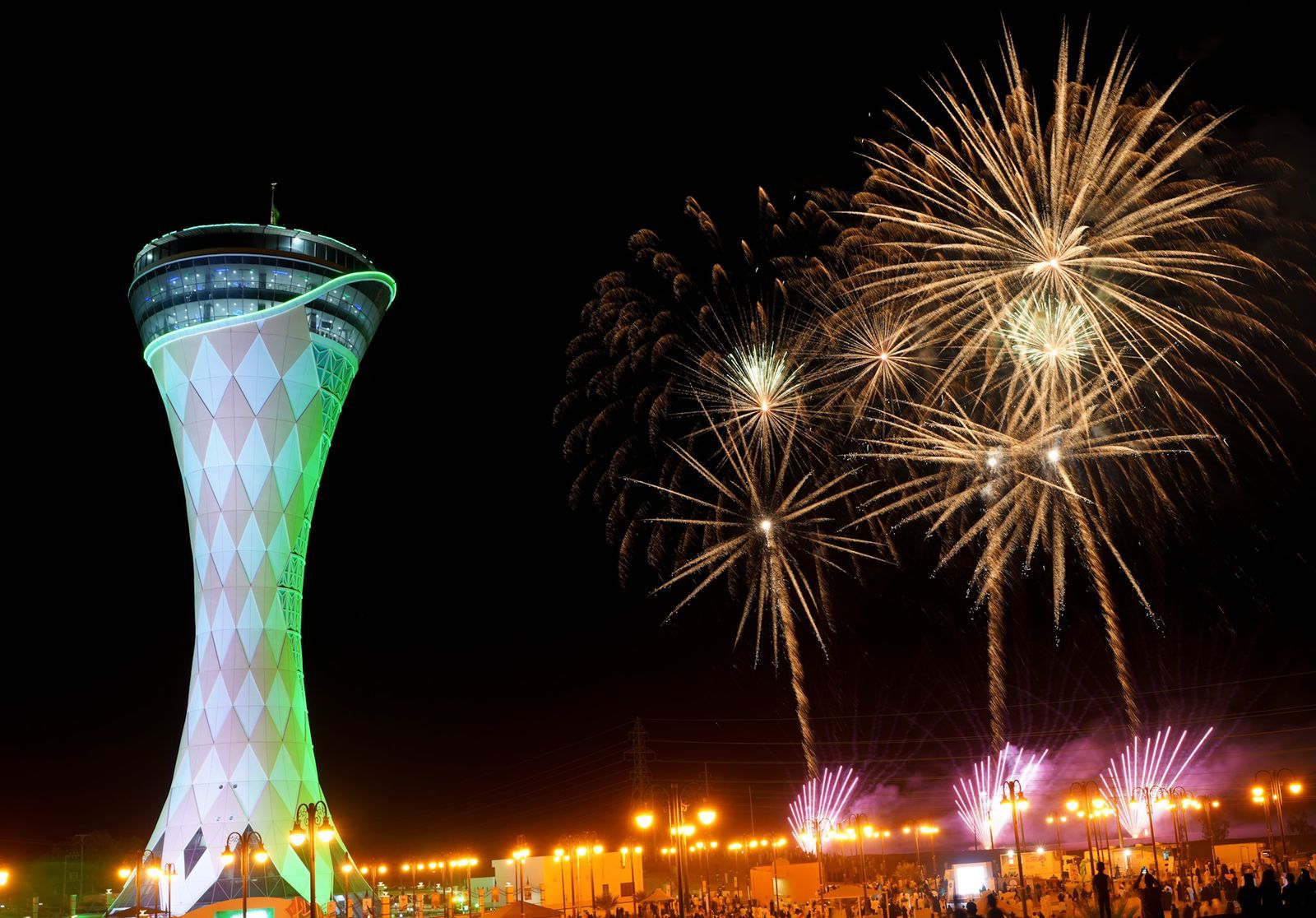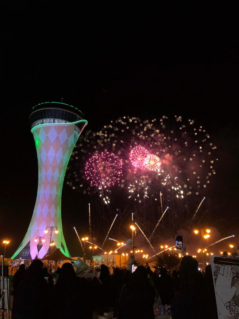 رسمت الألعاب النارية في فعاليات الاحتفال باليوم الوطني الـ 92 للمملكة في مدينة عرعر، لوحة جمالية نالت استحسان زوار الفعاليات، وذلك في حديقة برج مياه عرعر.
