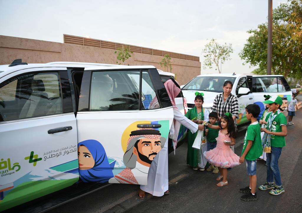 نفذت قافلة الحوار التي أطلقها مركز الملك عبدالعزيز للحوار الوطني تزامناً مع احتفالات اليوم الوطني الثاني والتسعين، خلال يومي الخميس والجمعة 26-27 صفر 1444ه، الموافق 22-23 سبتمبر 2022م عدداً من الزيارات، شملت متنزه البجيري ومحافظتي الدرعية ورماح، لنشر وتنمية ثقافة الحوار، بين أوساط المجتمع. وتم خلال الزيارات المشاركة بالاحتفاء باليوم الوطني من خلال توزيع أكثر من (1200) علم ومطبوعة ووشاح تحمل شعار اليوم الوطني، في عدد من الأماكن العامة، كما قام المشاركون في القافلة بجولة في سيارات القافلة، على عدد من الميادين العامة، والمتنزهات لاطلاع مرتاديها على أهداف القافلة وإصداراتها التي تعزز ثقافة الحوار والتسامح .