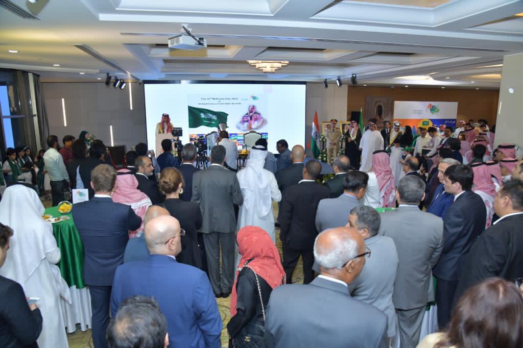 استقبل سفير خادم الحرمين الشريفين في جمهورية الهند صالح بن عيد الحصيني، واعضاء السفارة أمس (الجمعة) المهنئين باليوم الوطني السعودي الــ ٩٢ وذلك بمقر السفارة في نيودلهي، وقد شرف الحفل وزير الصحة ورعاية الأسرة والكمياويات والأسمدة الهندي،مانسك ماندافيا، ووكلاء وزارة الخارجية الهندية، ورؤساء البعثات الدبلوماسية، والإعلاميون واكاديمين واعضاء مؤسسات الفكر وأصدقاء السفارة.