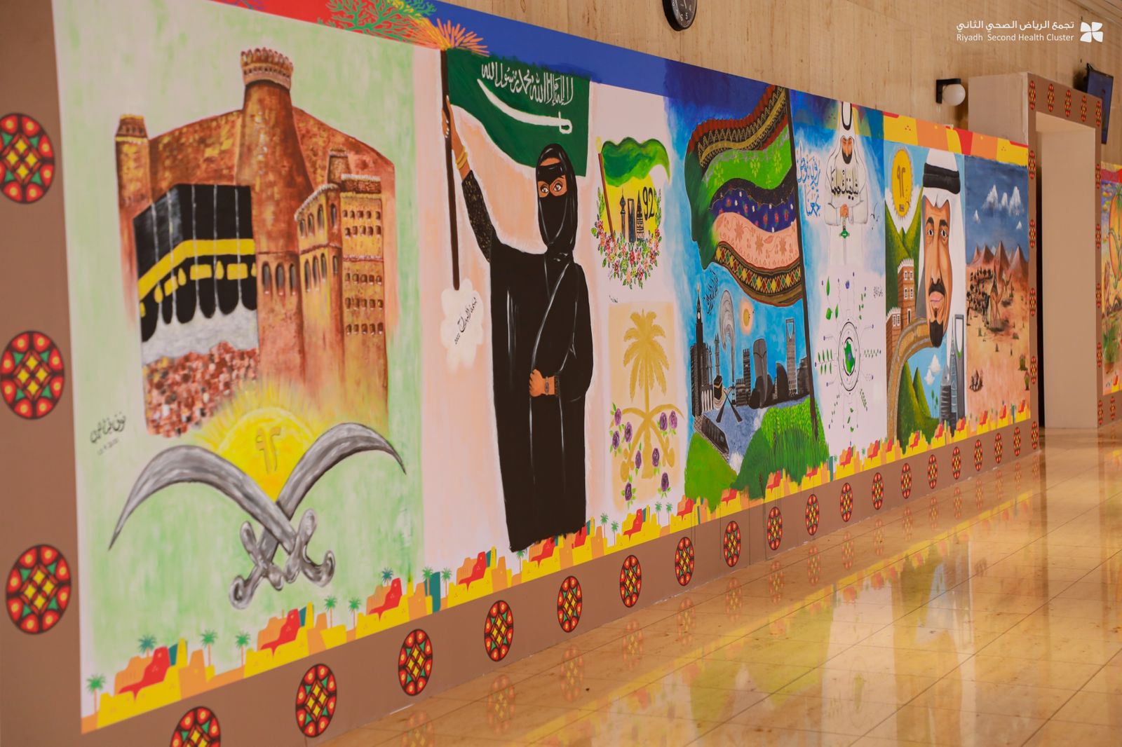 أطلق “تجمع الرياض الصحي الثاني” ؛ جدارية بطول 20 متراً ؛ لمنسوبيه تزامنا مع احتفالات اليوم الوطني السعودي الـ 92 ؛ للتعبير عن حب الوطن ؛ وذلك ضمن برنامج “تجمعي شو”؛ الذي يهدف إلى إبراز مواهب الموظفين في مختلف الفنون.