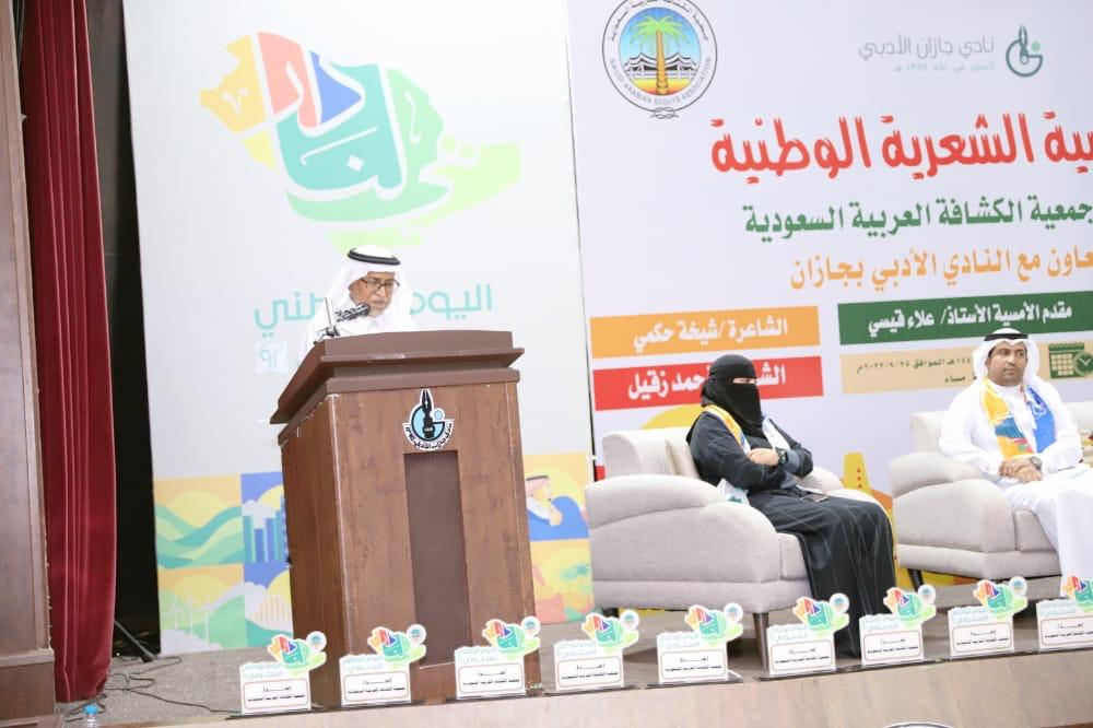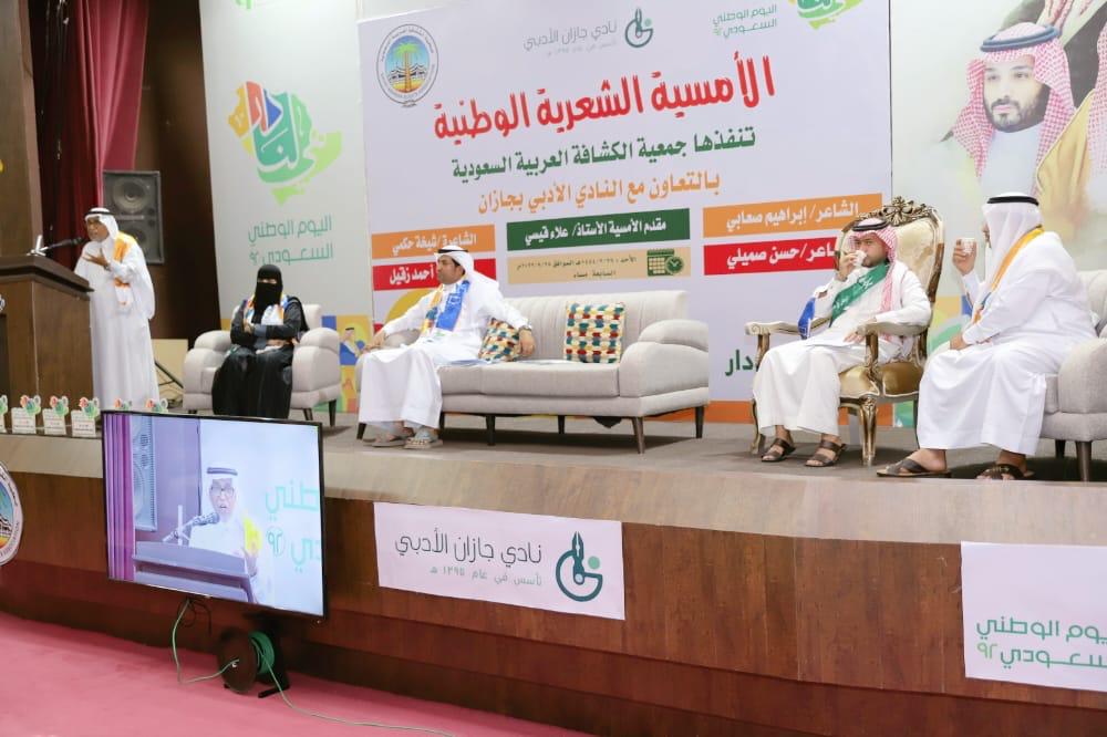 نظم نادي جازان الأدبي بالتعاون مع جمعية الكشافة العربية السعودية أمسية شعرية في يوم الأحد 29/2/1444هـ الموافق 25/9/2022م، وذلك بمناسبة اليوم الوطني 92 للمملكة العربية السعودية.