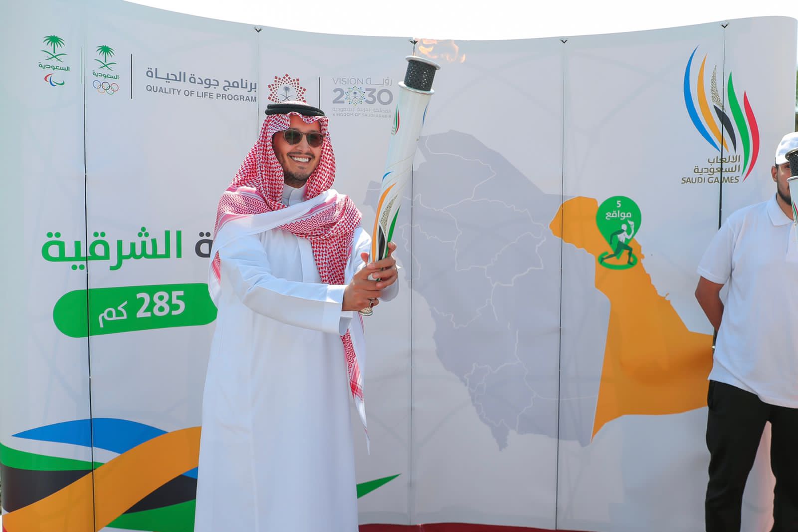 تسلم صاحب السمو الملكي الأمير أحمد بن فهد بن سلمان بن عبدالعزيز نائب أمير المنطقة الشرقية بديوان الإمارة اليوم الاثنين شعلة دورة الألعاب السعودية 2022 بحضور صاحبة السمو الملكي الأميرة دليل بنت نهار بن سعود نائب مدير عام دورة الألعاب السعودية وصاحبة السمو الملكي الأميرة دليل بنت فيصل ال سعود مديرة العمليات لجودة الشعلة وأعضاء اللجنة العليا المنظمة وسعادة وكيل إمارة المنطقة الشرقية الدكتور خالد بن محمد البتال وعدداً من اللاعبين.