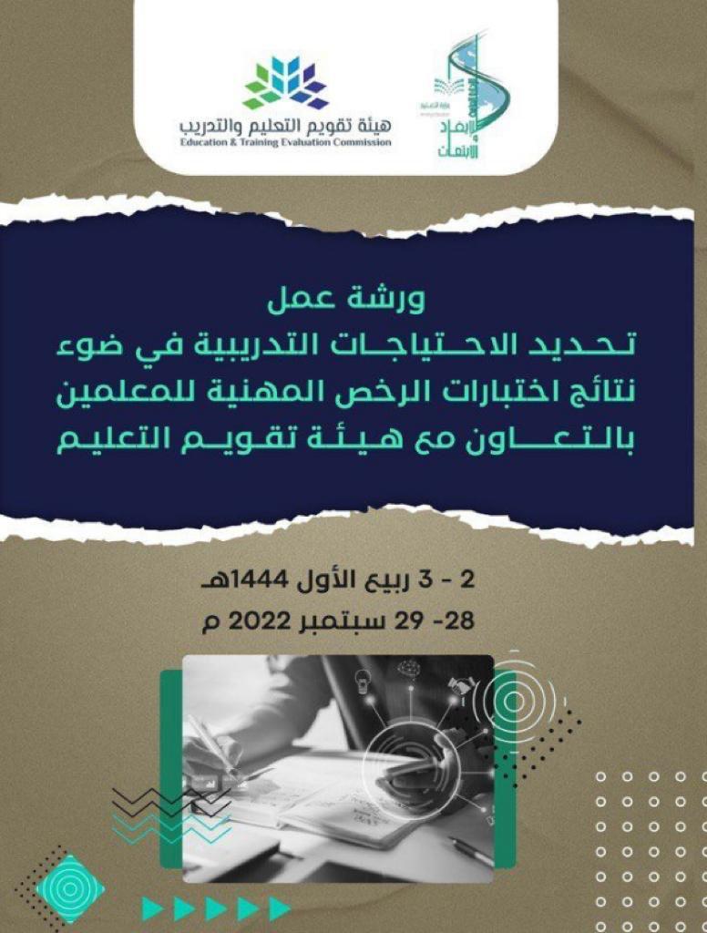 الجدير بالذكر أن الورشة إلى تحليل الاحتياجات التدريبية لشاغلي الوظائف التعليمية لثلاث مناطق إدارية بواقع 9 إدارات تعليمية في ضوء نتائج اختبارات الرخصة المهنية للمعلمين، وتحليل نتائج اختبار الرخصة المهنية، وتحديد المسار التربوي لمعلمي الإدارات التعليمية المستهدفة و تحديد الاحتياجات التدريبية التربوية والمهنية لهم، وتحليل نتائج اختبارات الرخصة المهنية في التخصصات الأساسية (1-2) ، بالاتساق مع نتائج اختبارات الطلاب الوطنية والدولية ، بالإضافة إلى تصنيف الاحتياجات التدريبية لمعلمي الإدارات التعليمية المستهدفة في التخصصات ( الرياضيات – العلوم – اللغة العربية ) والمتقاطعة مع المهارات المنخفضة في نتائج الطلاب في الاختبارات الدولية والوطنية و ترتيب الأولويات المعايير والمهارات ذات الاحتياج الأعلى.