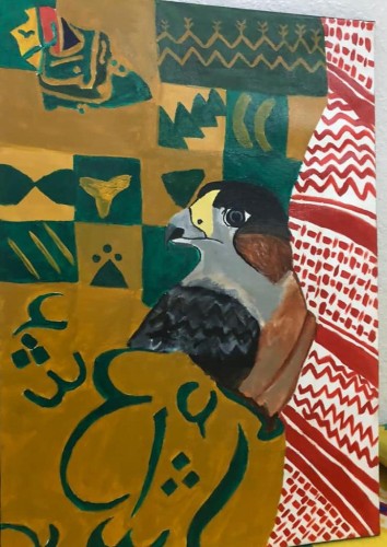 وقد استخدم في رسمها ألوان الاكليرك واستغرق في رسمها عشر ساعات من الرسم المتواصل لتخرج بهذا الشكل الجميل.