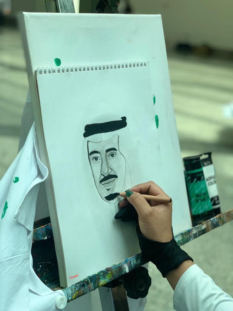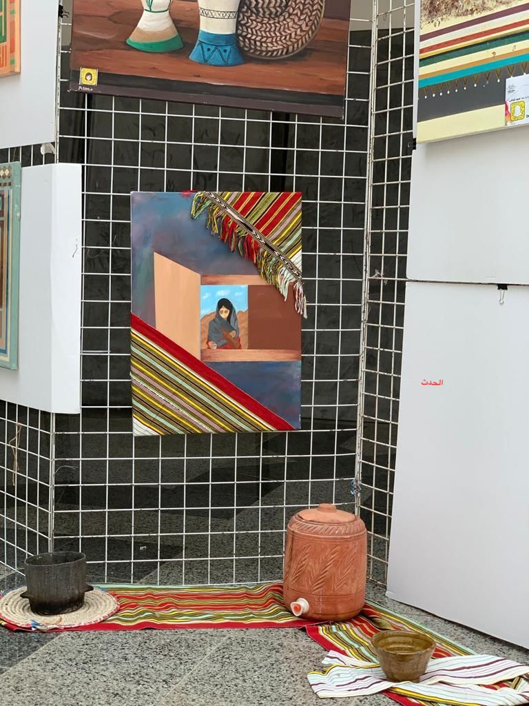 مقرر. مشروع التخرج. السجاد الوطني. الخريجة رحمة علي بخيت مبروك ، والفنان عبدالله القاسمي من فريق بيش آرت بالمركز الاول بالرسم وشكرت جميع الحاضرات والإعلاميات وجميع من ساهم في نجاح معرض كلية التصميم والعمارة بمناسبة الإحتفاء باليوم الوطني 92