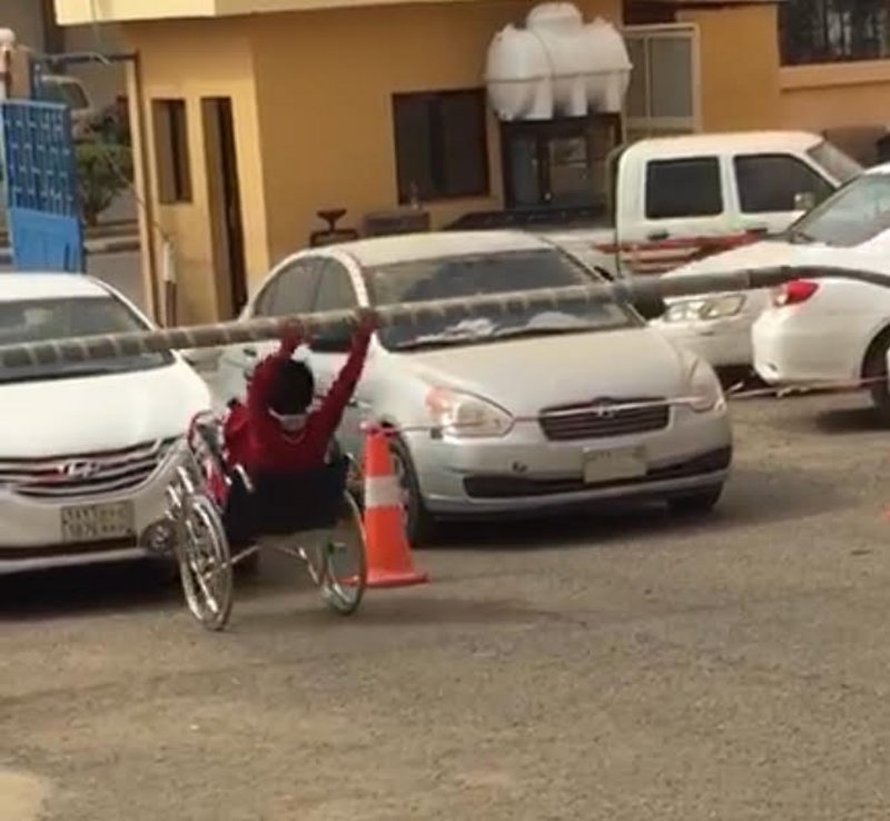 وظهر الشاب في مقطع فيديو متداول، وهو يعبث بكرسي متحرك لذوي الاحتياجات الخاصة، حيث بدا قادمًا من مسافة بعيدة منحدرة قبل أن يسقط على الأرض بعد ارتطامه بأحد الأعمدة.