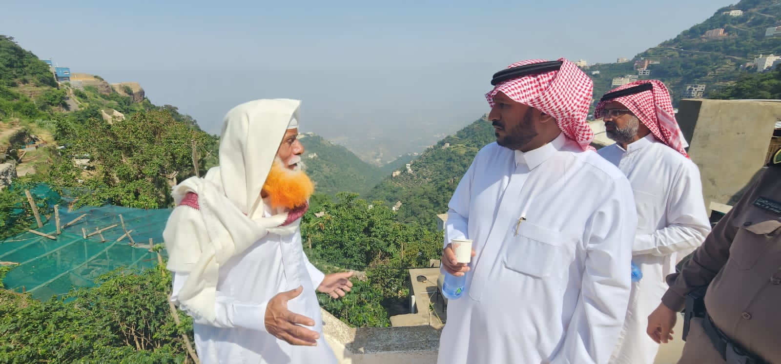 قام محافظ فيفاء المهندس صالح بن علي القحطاني يرافقه مدراء الدوائر الحكومية بالمحافظة صباح اليوم بجولة تفقدية على طرق المحافظة بعد الأمطار الغزيرة التي شهدتها فيفاء مساء البارحة شملت الجولة طريق الثويعي الذي شهد عدد من الأنيهارات الصخرية حيث وقف محافظ فيفاء على المواقع المتضررة ووجه بلدية المحافظة التي باشرت العمل في رفع الانهيارات على الطريق بسرعة توفير وسائل السلامة وصيانة الطريق واعادة بناء الأجزاء المنهارة وكذلك توفير مصدات والأنارة للطريق والتقى القحطاني بالمواطنين واستمع الى مطالباتهم ووجه مسؤلي الجهات الحكومية بالعمل كل في فيما يخصه ، وشملت جولة محافظ فيفاء في جبل الثويعي زيارة مزرعة العم سلمان حسن الثويعي احد مزارعي البن حيث تجول في ارجاء المزرعة وبحث مع مدير فرع الزراعة توفير كل الدعم اللازم الذي تحتاجه مزرعة العم سلمان الثويعي.