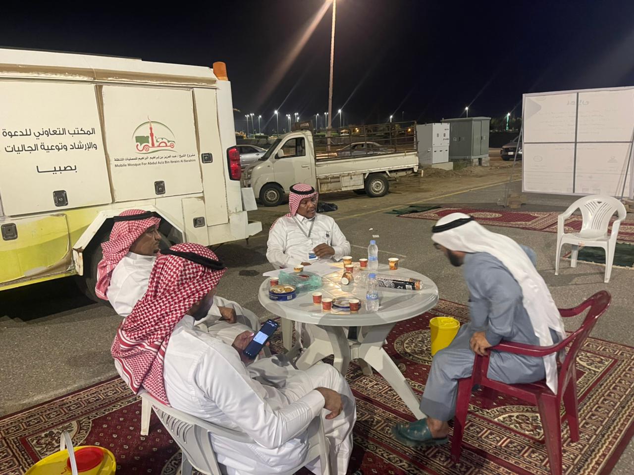 بالتعاون مع صحة منطقة جازان ممثلة في برنامج العيادات المتنقلة و مراكز الطبابة و بدعم من منصة إحسان وضمن برنامج العربة الطبية لجمعية رواد للعمل التطوعي تستمر عربة العيادات المتنقلة للرعاية الطبية في مركز العالية في حديقة البلدية