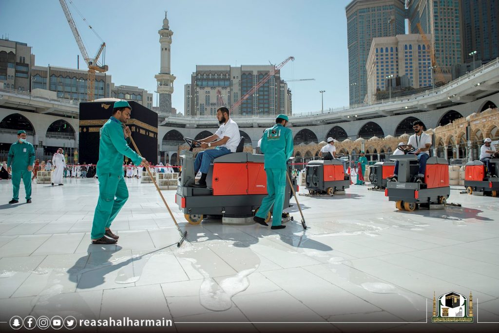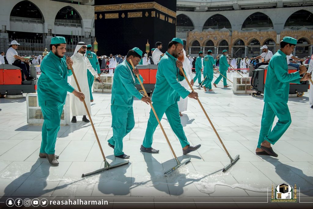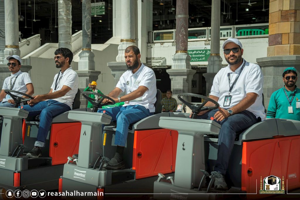 وقد جهزت إدارة التطهير والسجاد بالمسجد الحرام، أكثر من (85) شاباً سعودياً يمثلون الدفعة الأولى من الشباب السعودي الطموح تتركز أعمالهم في قيادة وتشغيل وصيانة العربات الحديثة المخصصة لنظافة المسجد الحرام في الصحن والأروقة والسطح.