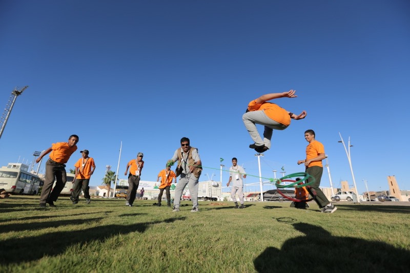 كما قام مجموعة من فريق دراجي الجوف لمقر المهرجان من منطلق الشراكة المجتمعية في تنفيذ الهوايات الكشفية عند الكشافين .