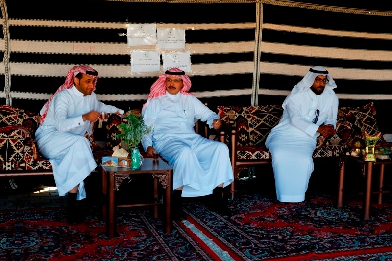 رافق الأحمري أثناء زيارته لمقر المهرجان الأستاذ مهناء بن عبدالله العنزي مدير ادارة المياه بفرع الوزارة و الأستاذ ناصر بن سعود المقبل مدير إدارة البيئة بالفرع .