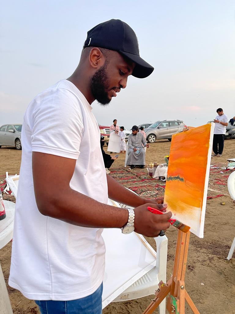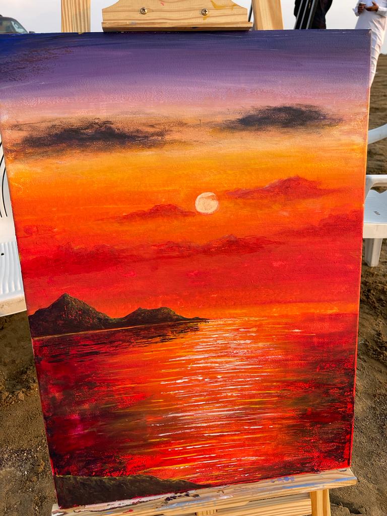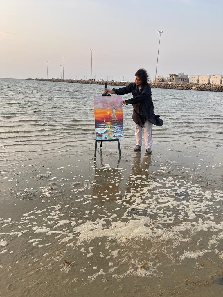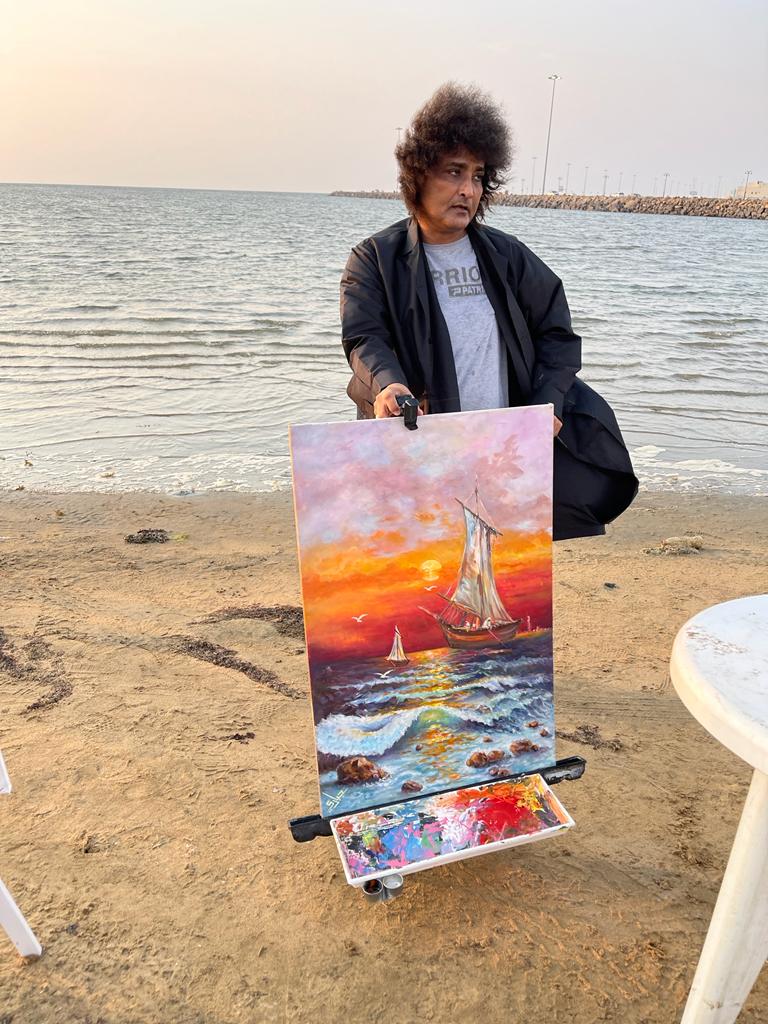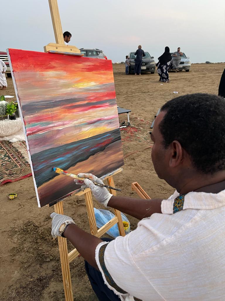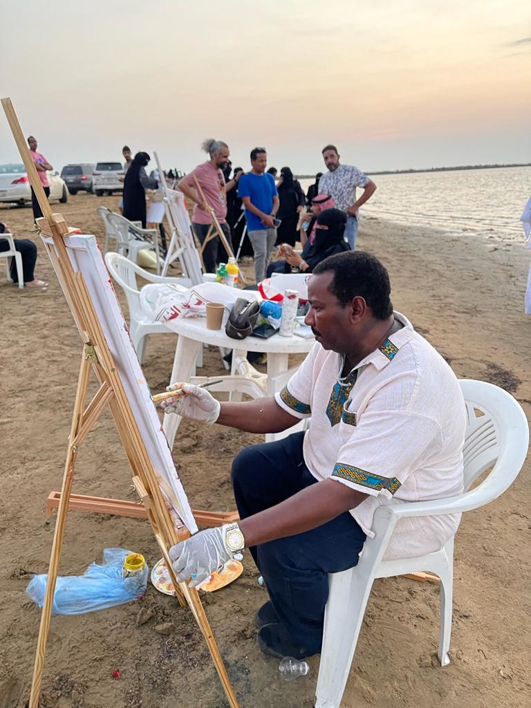 فريق صبيا للفن التشكيلي ينظم فعالية رسم الغروب في شاطئ جازان الشمالي