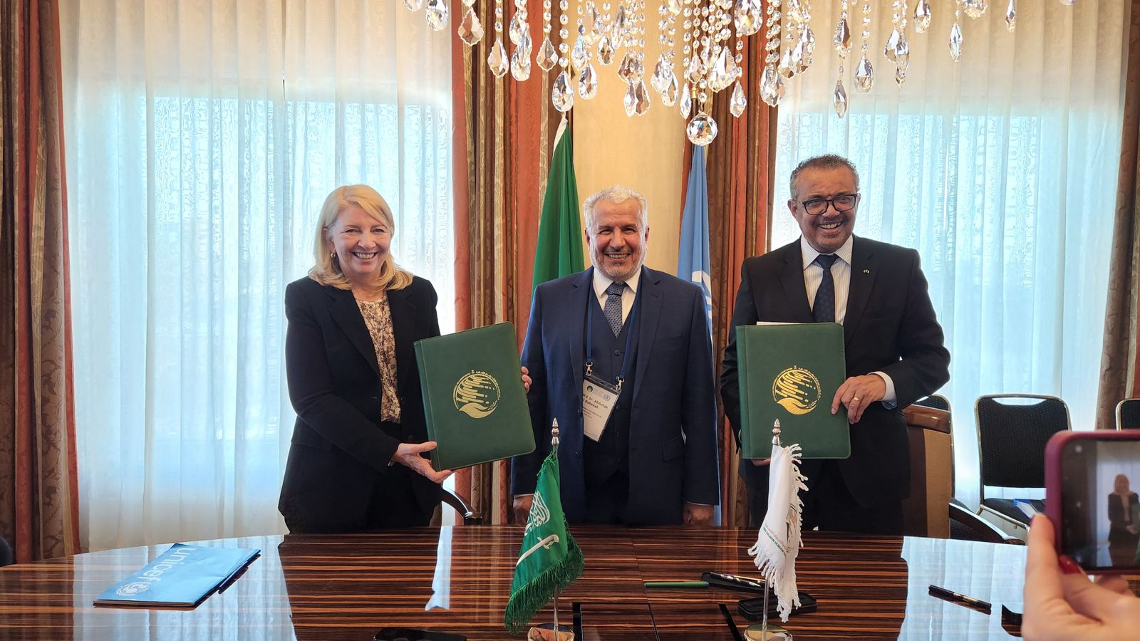 وقع مركز الملك سلمان للإغاثة والأعمال الإنسانية أمس اتفاقيتين مشتركتين مع منظمة الصحة العالمية ومنظمة