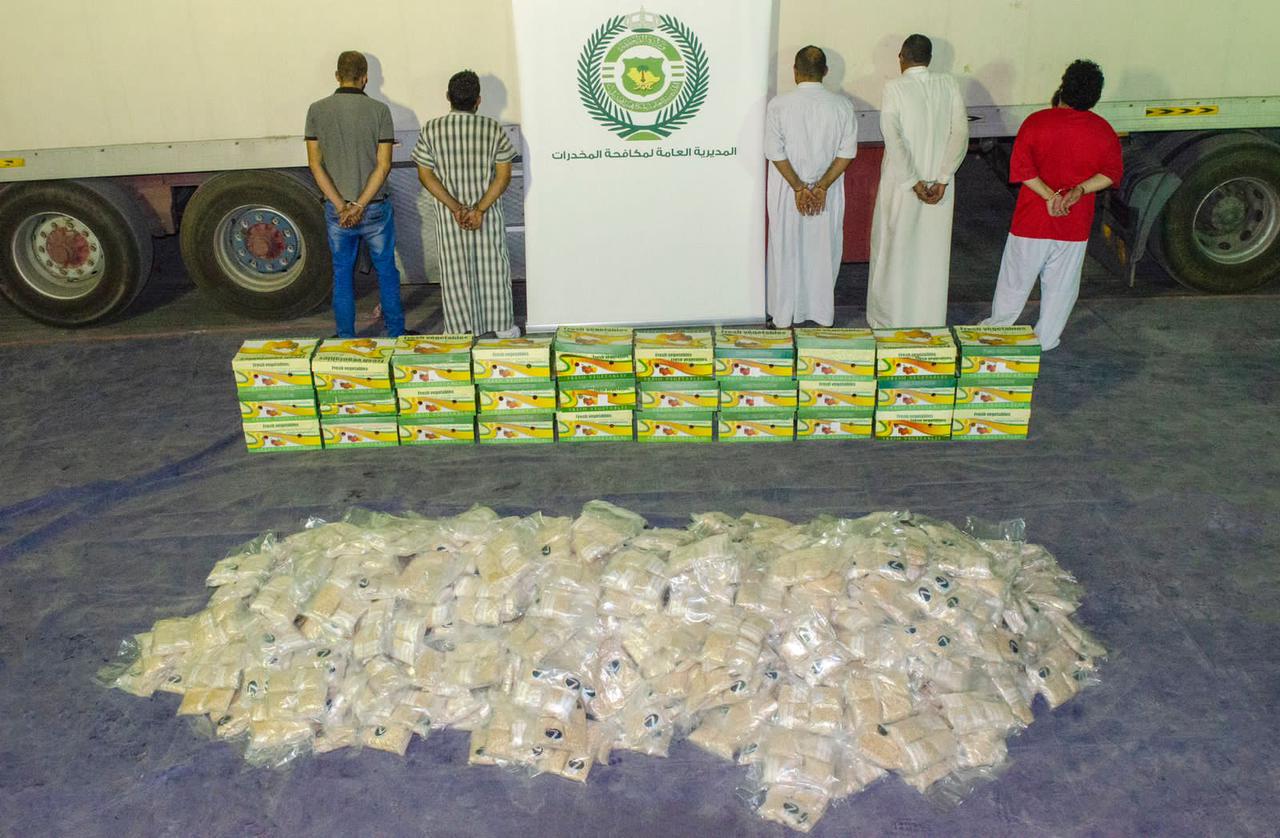 صرح المتحدث الرسمي للمديرية العامة لمكافحة المخدرات الرائد محمد النجيدي، بأن المتابعة الأمنية لشبكات تهريب وترويج المخدرات التي تستهدف أمن المملكة وشبابها، أسفرت عن إحباط محاولة تهريب (3,989,000) قرص من مادة الإمفيتامين المخدر، بالتنسيق مع هيئة الزكاة والضريبة والجمارك، مخبأة داخل شحنة “فلفل”، والقبض على مستقبليها بمدينة الرياض ومحافظة جدة، وهم (5) أشخاص: مقيم ووافدان بتأشيرتي زيارة، ومرور من الجنسية السورية ووافد زائر من الجنسية المصرية ومواطن، وجرى إيقاف المتهمين واتخاذ الإجراءات النظامية الأولية بحقهم وإحالتهم إلى النيابة العامة.